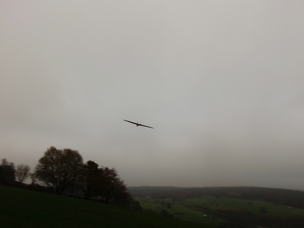 Heute 2-4 bft und feucht-trübe +6° am Osthang im Spessart, aber das Tragen war ganz brauchbar, sogar der kleine FiFi konnte sich an dem flachen Hang zeitweise halten.....endlich mal wieder 2 Stunden ausgiebig fliegen :)