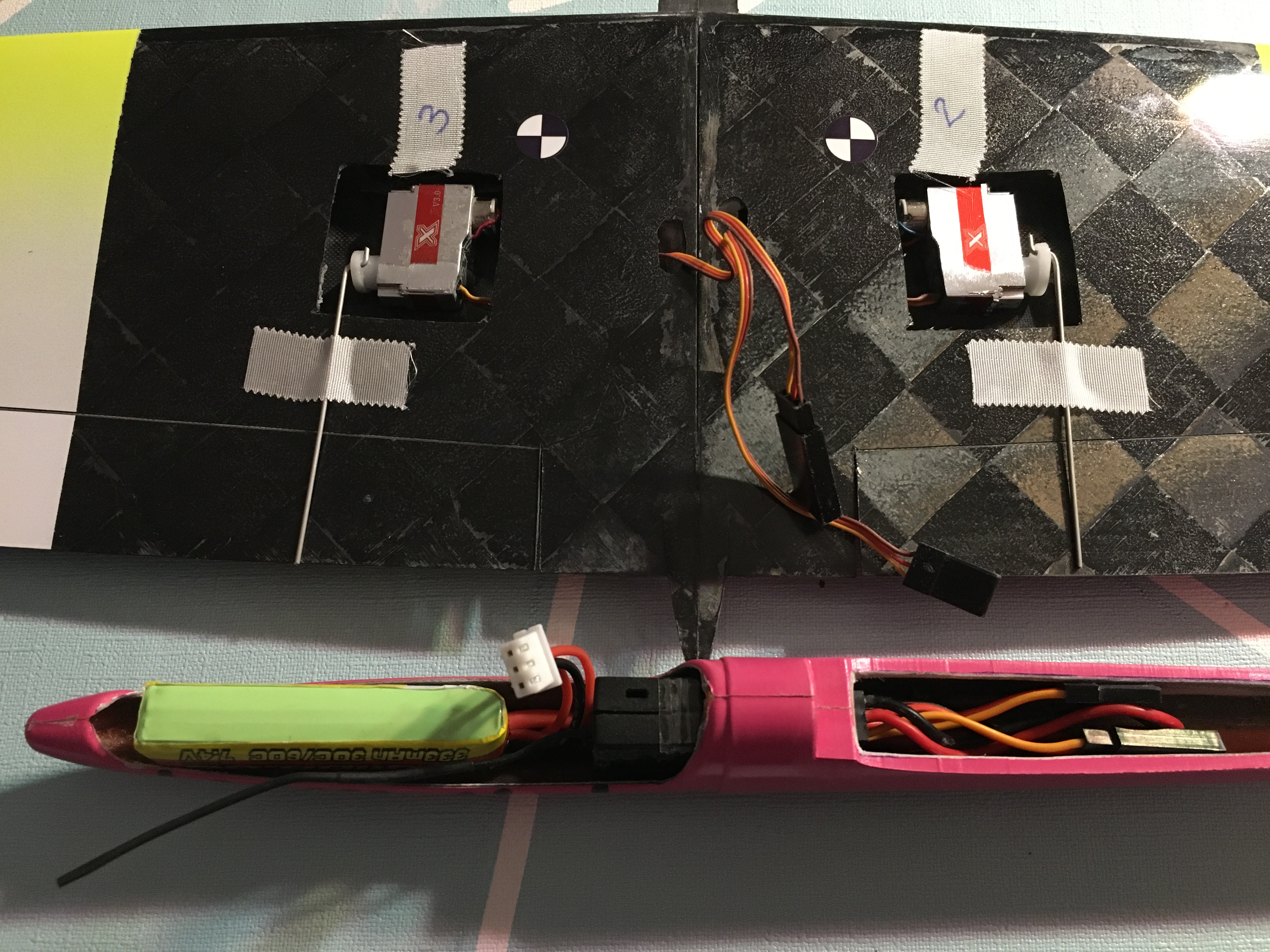 Es ist geschafft, der Kleine ist soweit fertig für den Erstflug. Morgen den Schwerpunkt nochmal überprüfen und dann auf passende Bedingungen zum einfliegen hoffen