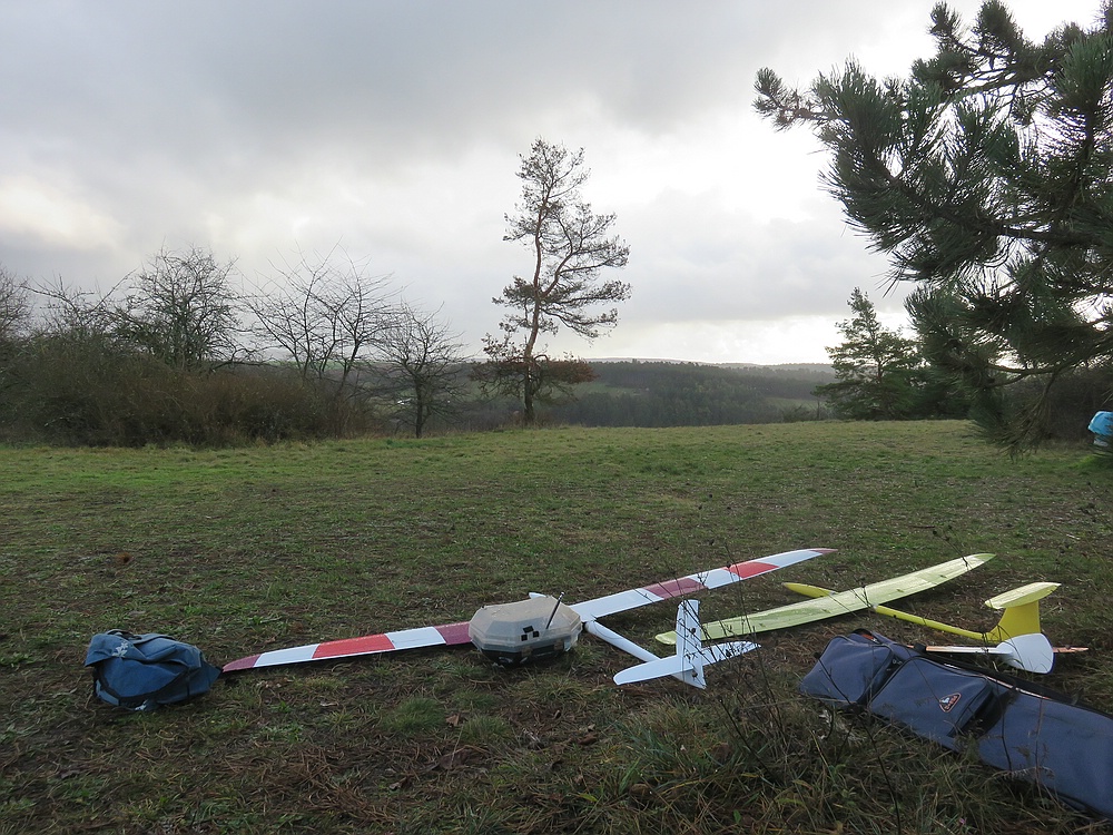 Fünf unerschrockene Piloten haben es fast 2 Stunden ausgehalten, denn der Flachhang hat für die thermiklastigen Modelle trotz 8/8 Bewölkung ganz passabel getragen :thumbup: