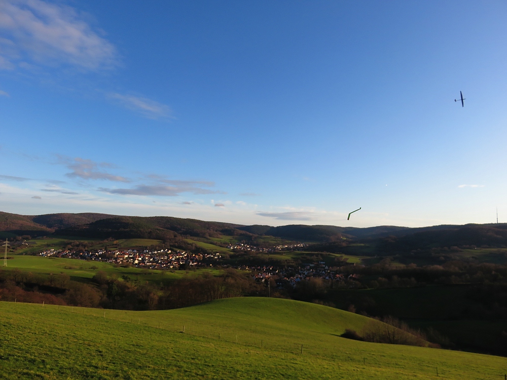 Heute waren wir am Osthang im Spessart bei schwachem Tragen und kalten Fingern zu fünft, aber ich habe diesmal weder fliegende noch sonstige Bilder gemacht.