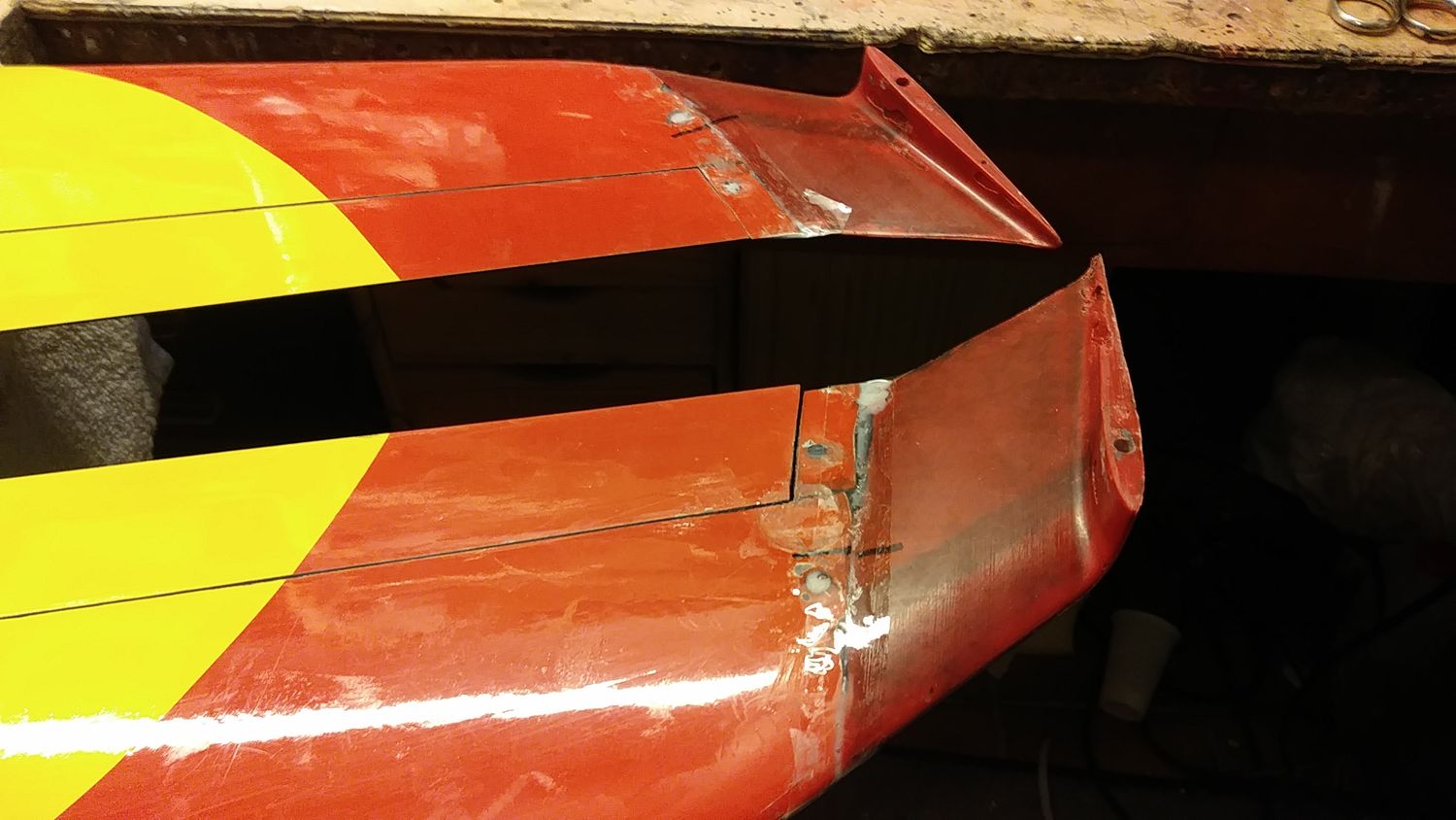 Lange Rede, kurzer Sinn....in der Simulation sieht die Auftriebsverteilung der erprobten Prothesenvariante beim Abriss ganz ähnlich aus wie der geplant gekürzte Außenflügel, müsste also technisch funktionieren. Dazu habe ich den ersten Lackfehler-Prototyp des Dispar reaktiviert und die kleinen Defekte aus der Flugerprobung repariert.