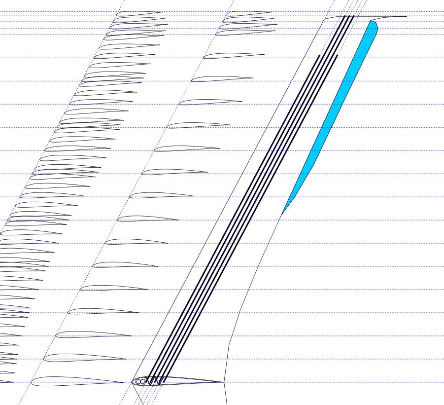 Ich hatte mir sogar eine spezielle Bauweise mit eine Kastenholm aus mehreren dreieckigen Querschnitten und 5 dünnen Kohlegurten überlegt um trotz dünnerer Profile mehr Torsionssteifigkeit bei gleichem Holmgewicht wie beim alten ARES zu bekommen, aber nicht mehr im CAD konstruiert.