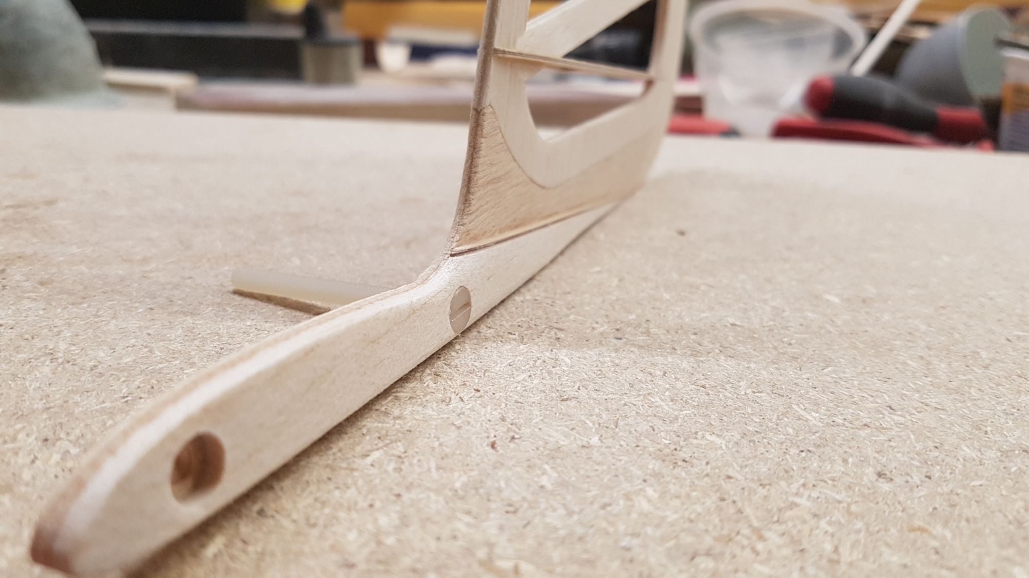 Holme haben schon ihre Position ich werde unten die zwei in 3x1mm Stab und oben 3x0,8 abgestuft einbauen.