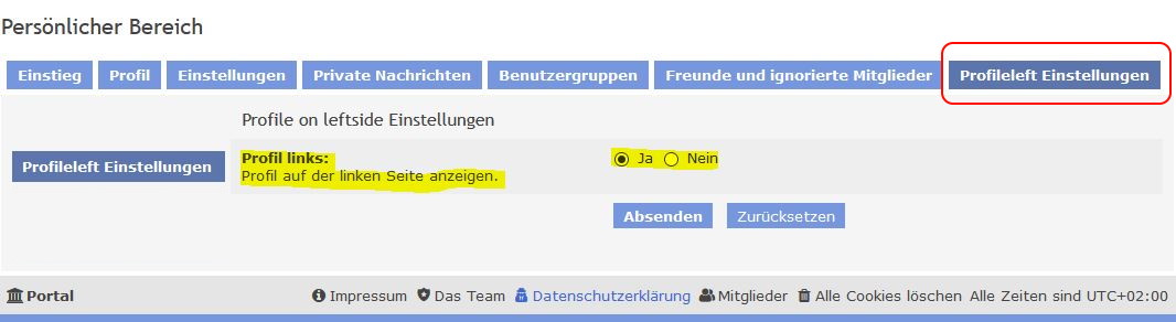 - Profil links/rechts anzeigen einstellbar