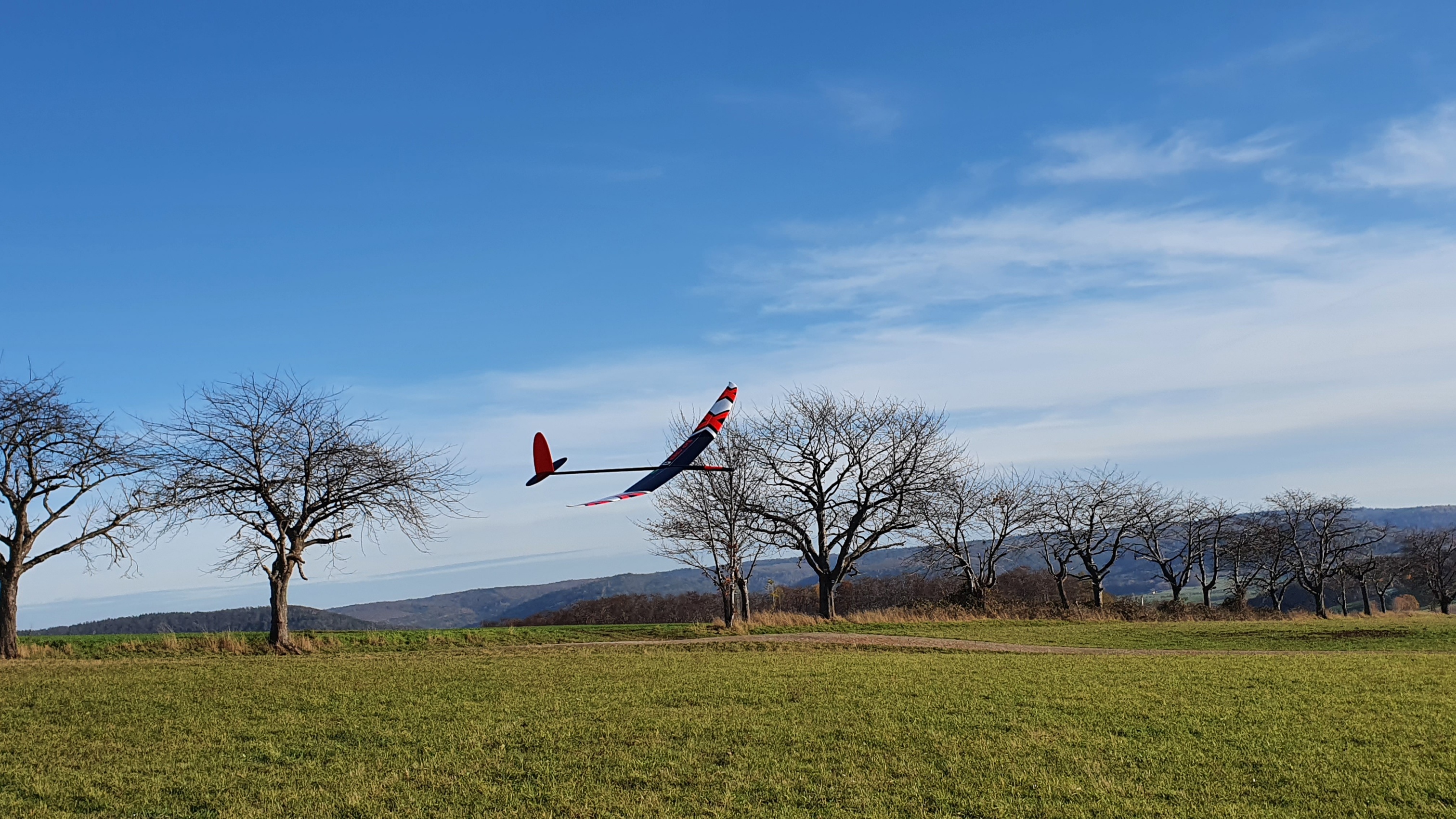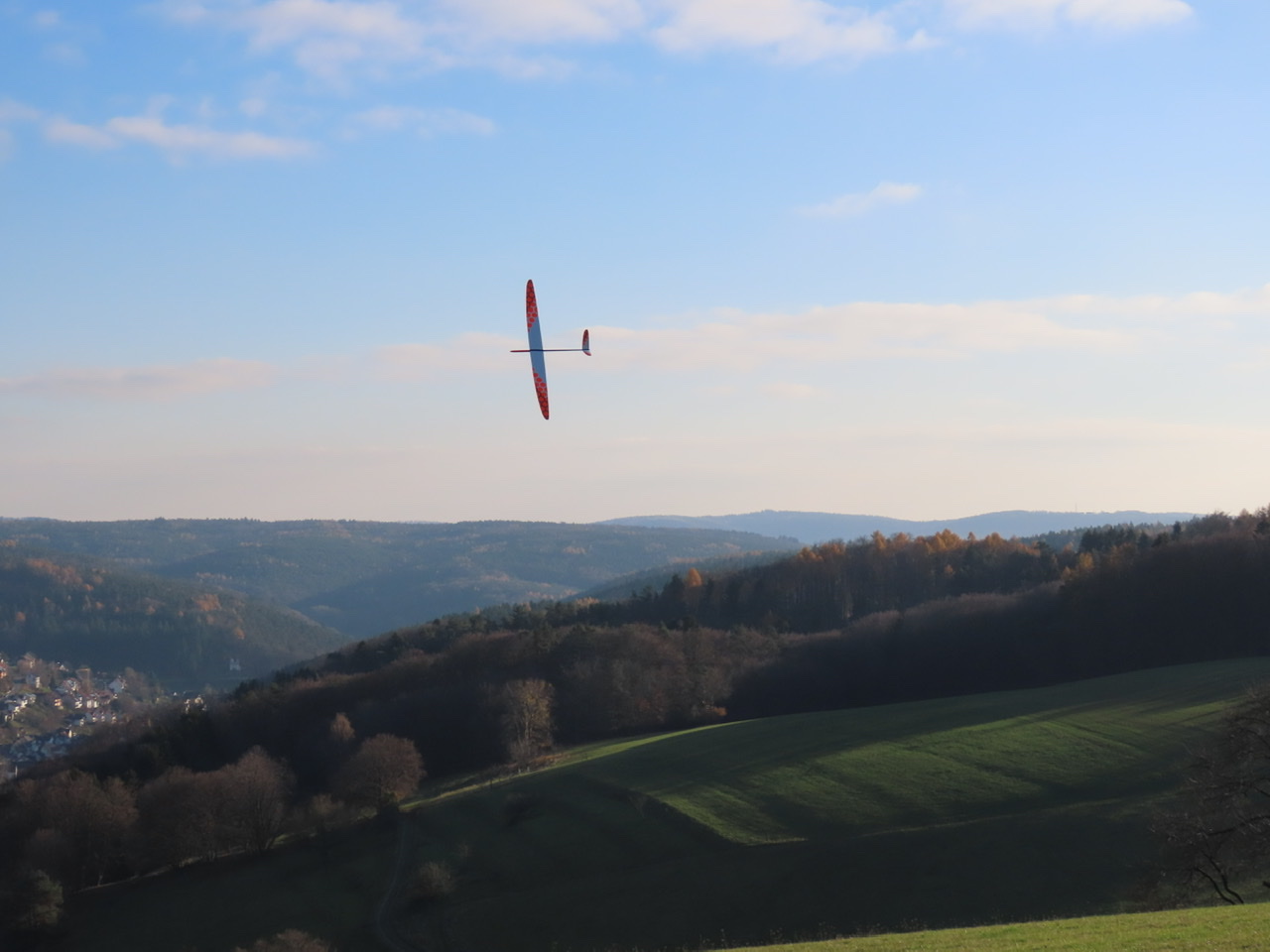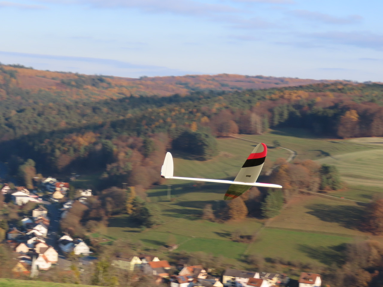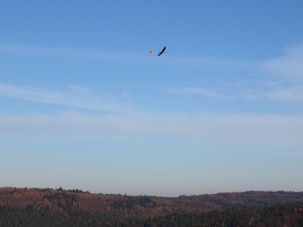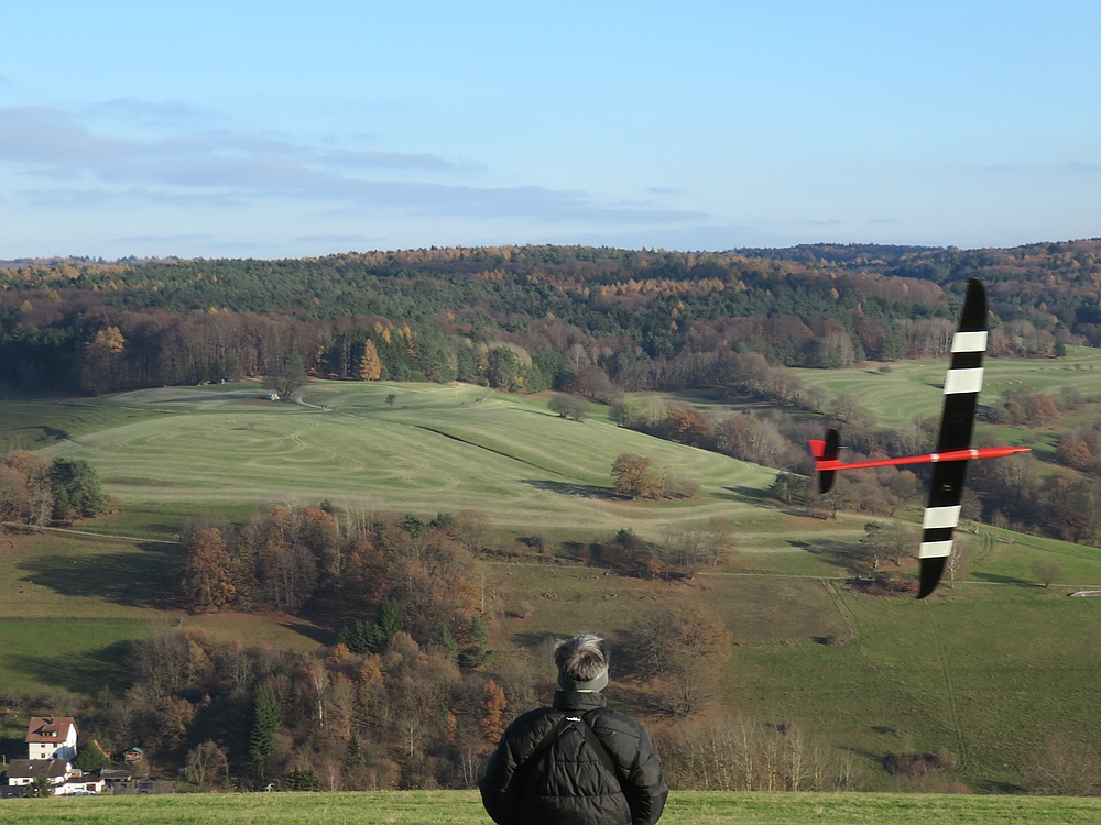 Heute wieder ein schöner Thermikflugtag bei frühlingshaften +17°, aber diesmal gings nach etwas Verwirrung wegen Widersprüchen zwischen vorhergesagter und tatsächlicher Windrichtung an den Osthang im Spessart
