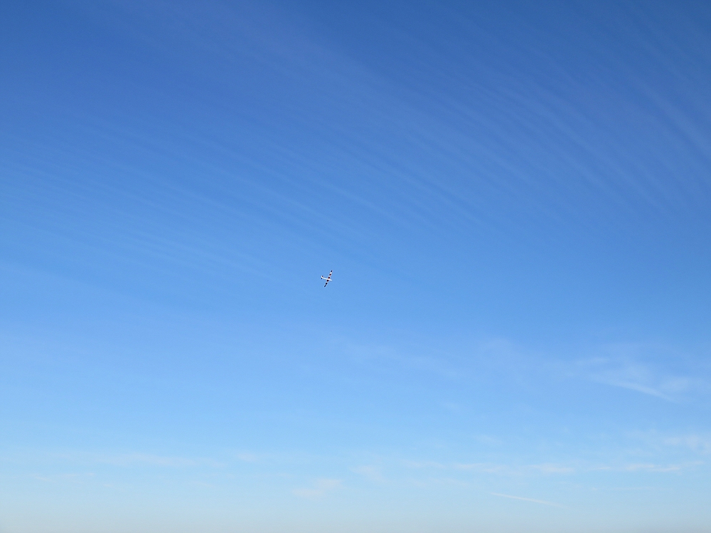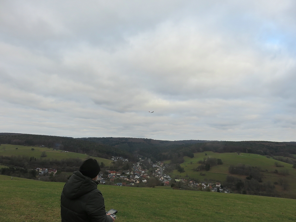 Bei 0-2 bft und +1° blieb der SSL bis zu 20 Minuten am Stück oben, Schnee am Rumpf und kalte Finger haben längere Flüge verhindert, aber es hat Spaß gemacht und knapp 2 Stunden an der frischen Luft haben auch sehr gut getan