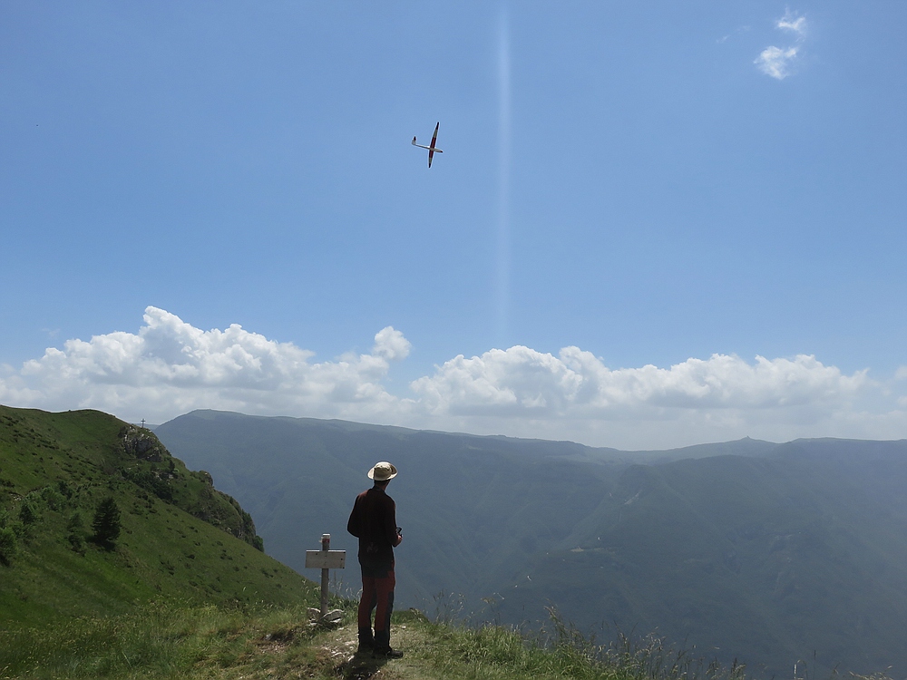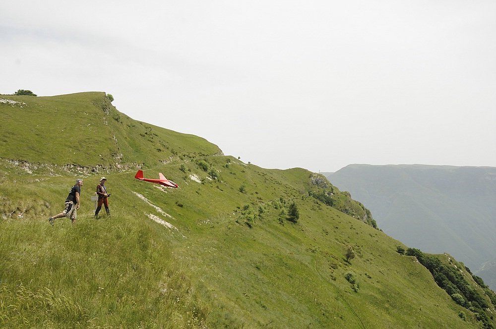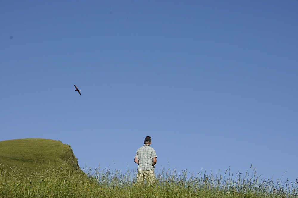 Der Lilloo durfte ein paar Flitschenstarts machen, aber an dem weitläufigen Hang ist er wegen der Sichtbarkeit nicht das optimale Fluggerät für schwaches Wetter.