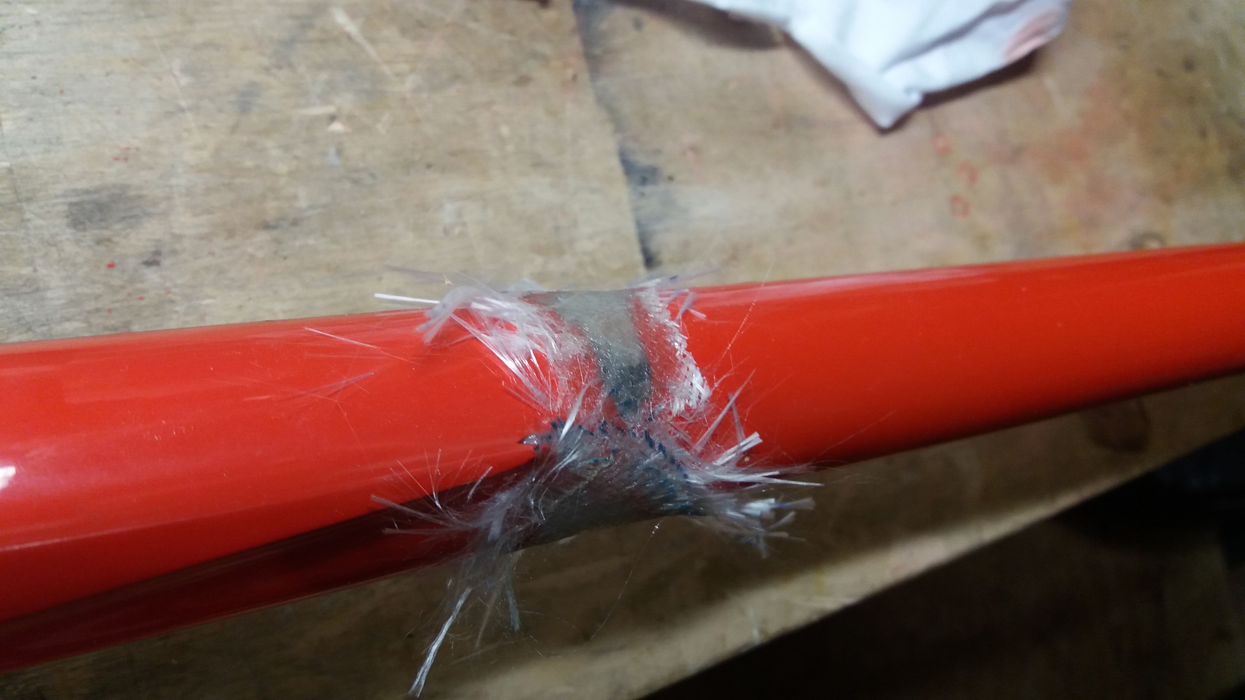 Nach dem aushärten wird der Schrumpfschlauch aufgeschnitten und entfernt, dann sieht es vor dem verschleifen so aus wie auf den Bildern meiner Needle, die ich vor 2 Wochen reparieren musste.