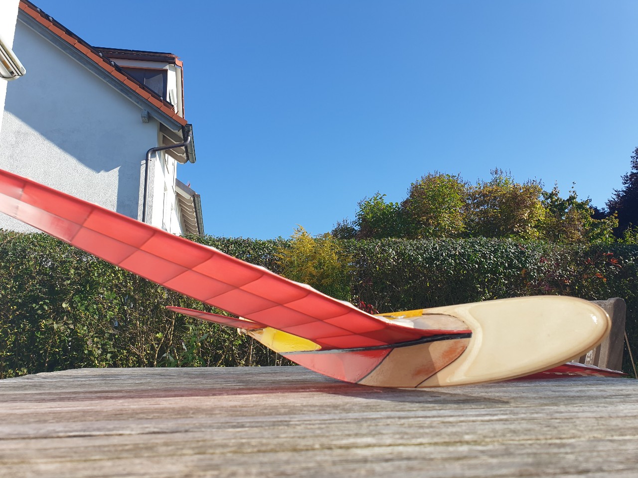 Inzwischen sind beide Flügelhälften des Azorace-Mini aus der Form und zusätzlich ist noch ein Ersatzflügel für den bei einer Springbaumattacke beschädigten Azorace 2,2 m Prototyp geschlüpft.