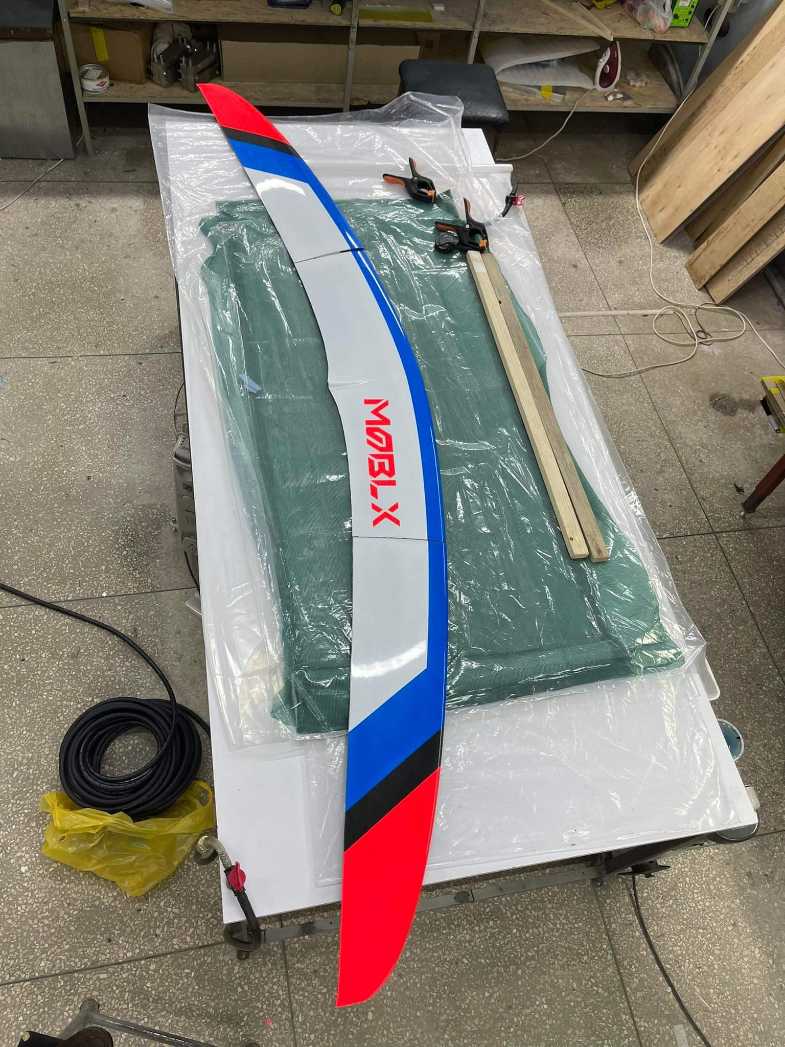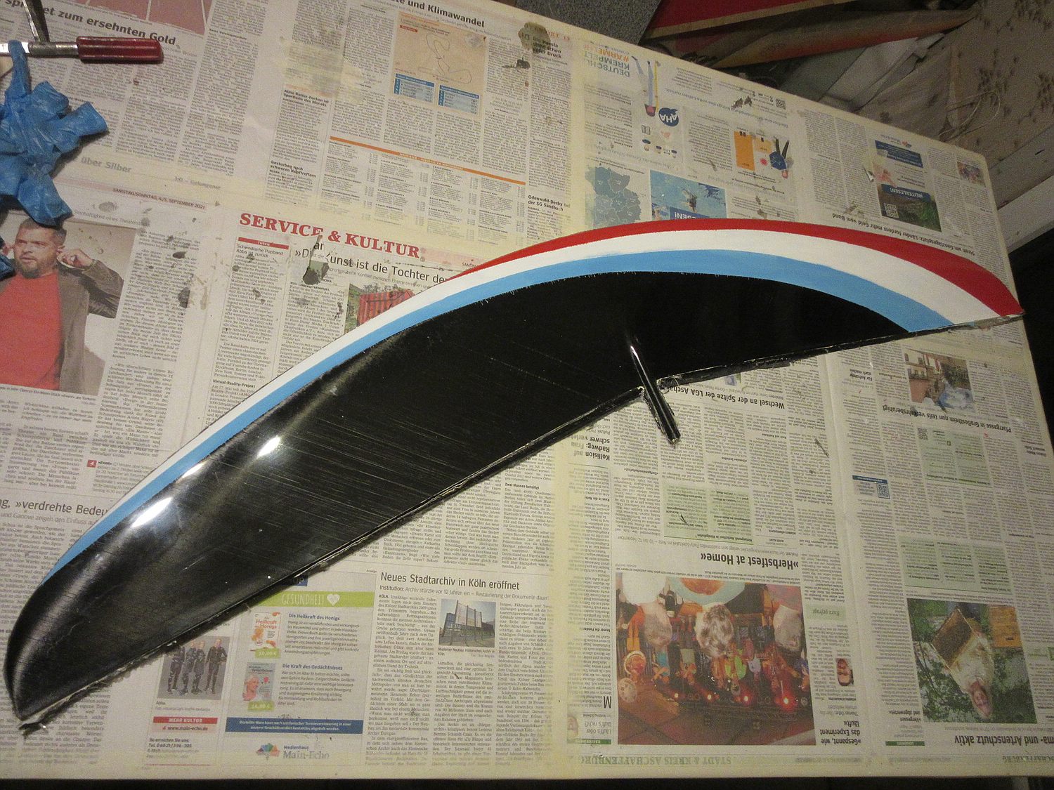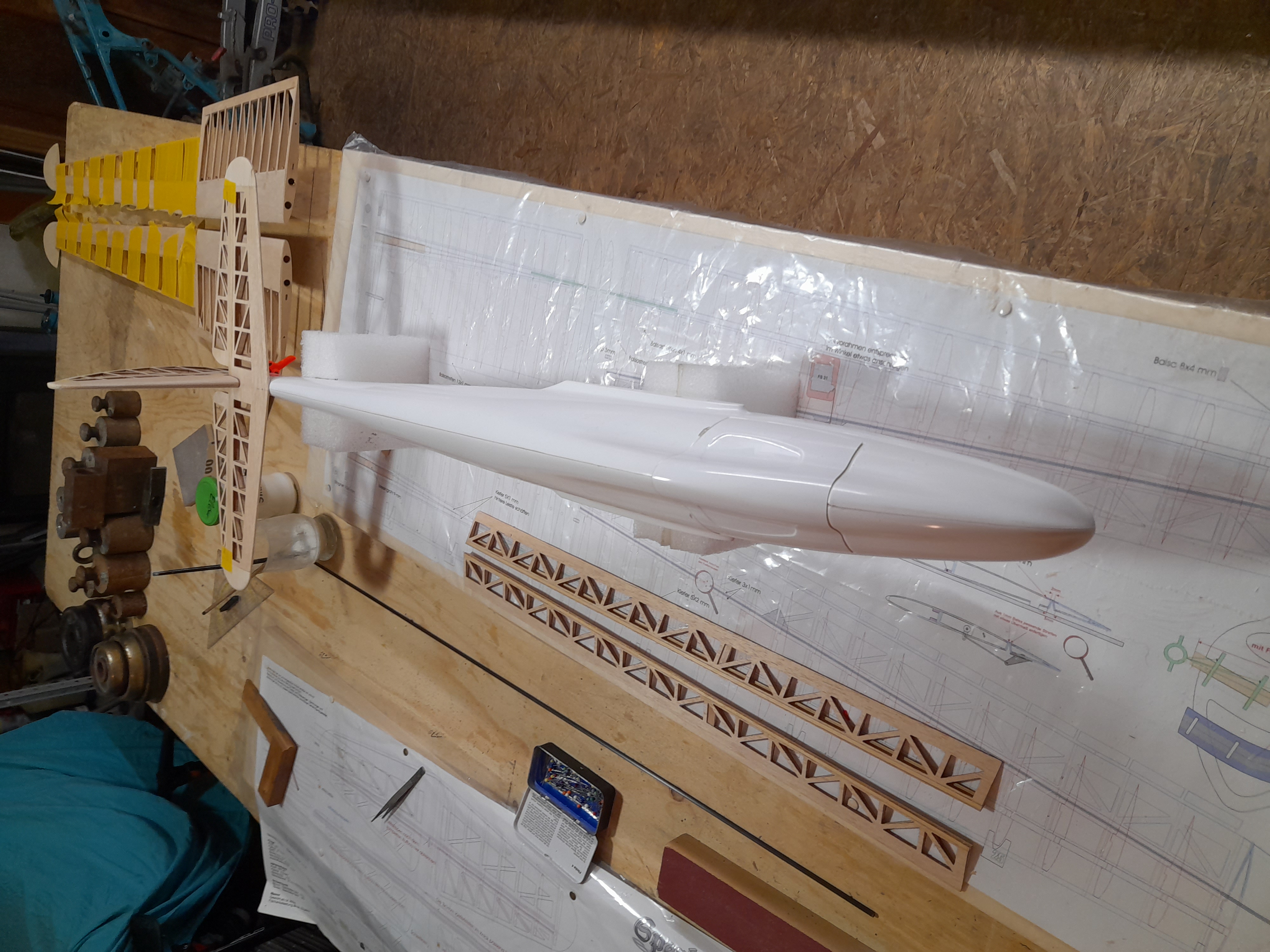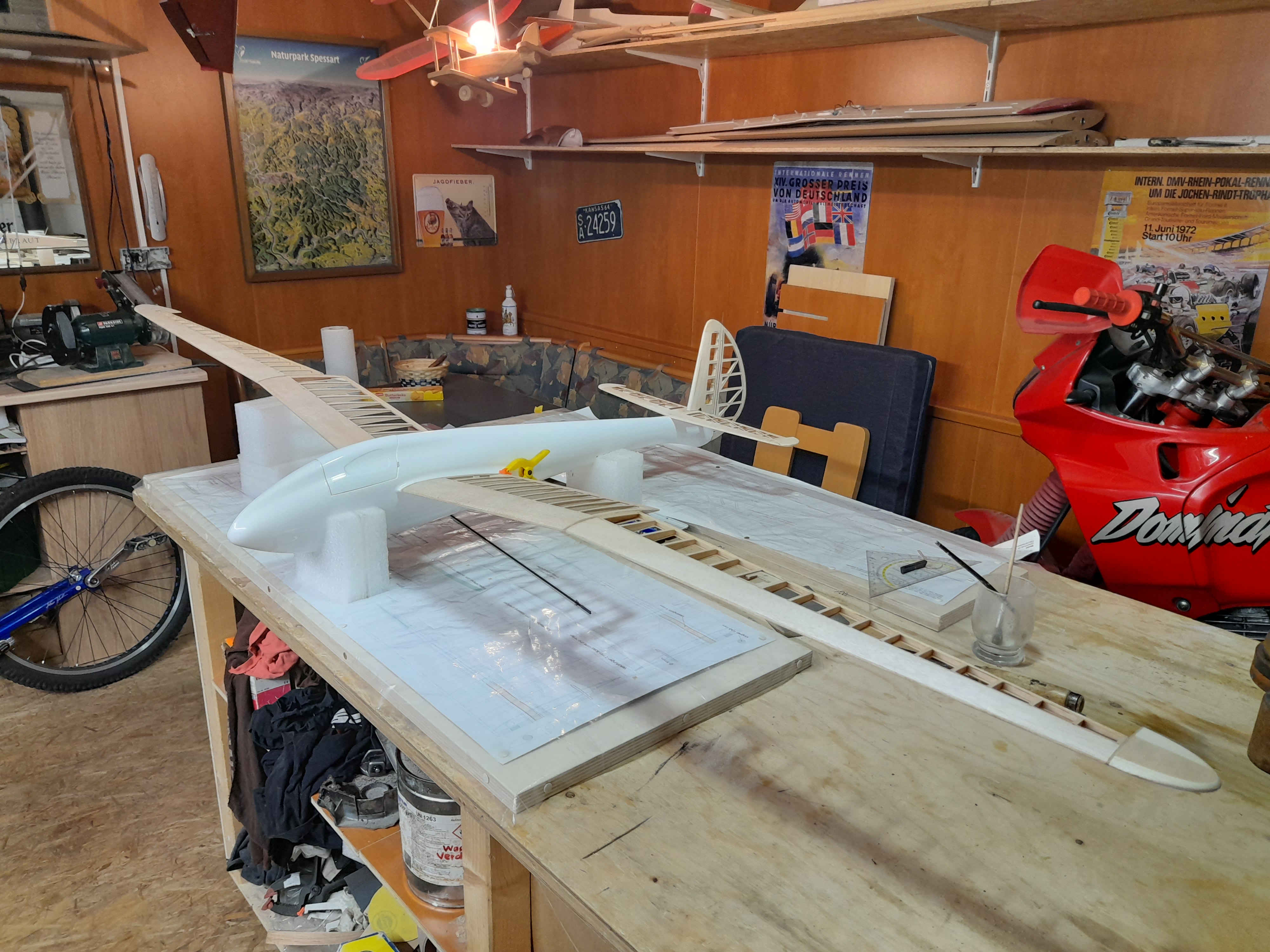 Die Außenflügel haben aktuell roh zusammen 560g, das ist wie ich finde ein echt guter Wert bei ~180cm Spannweite.