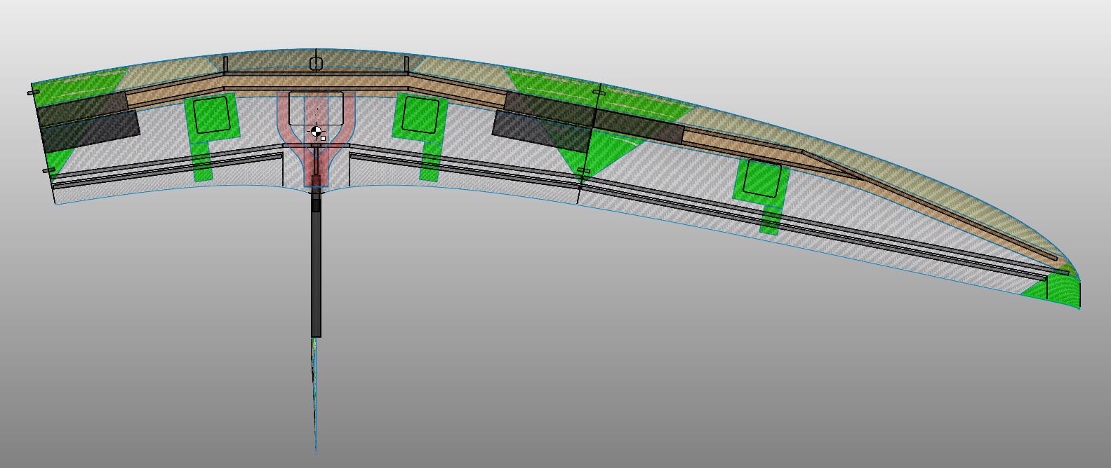 In grün sind 80er Kohle Verstärkungen in 0/90°.