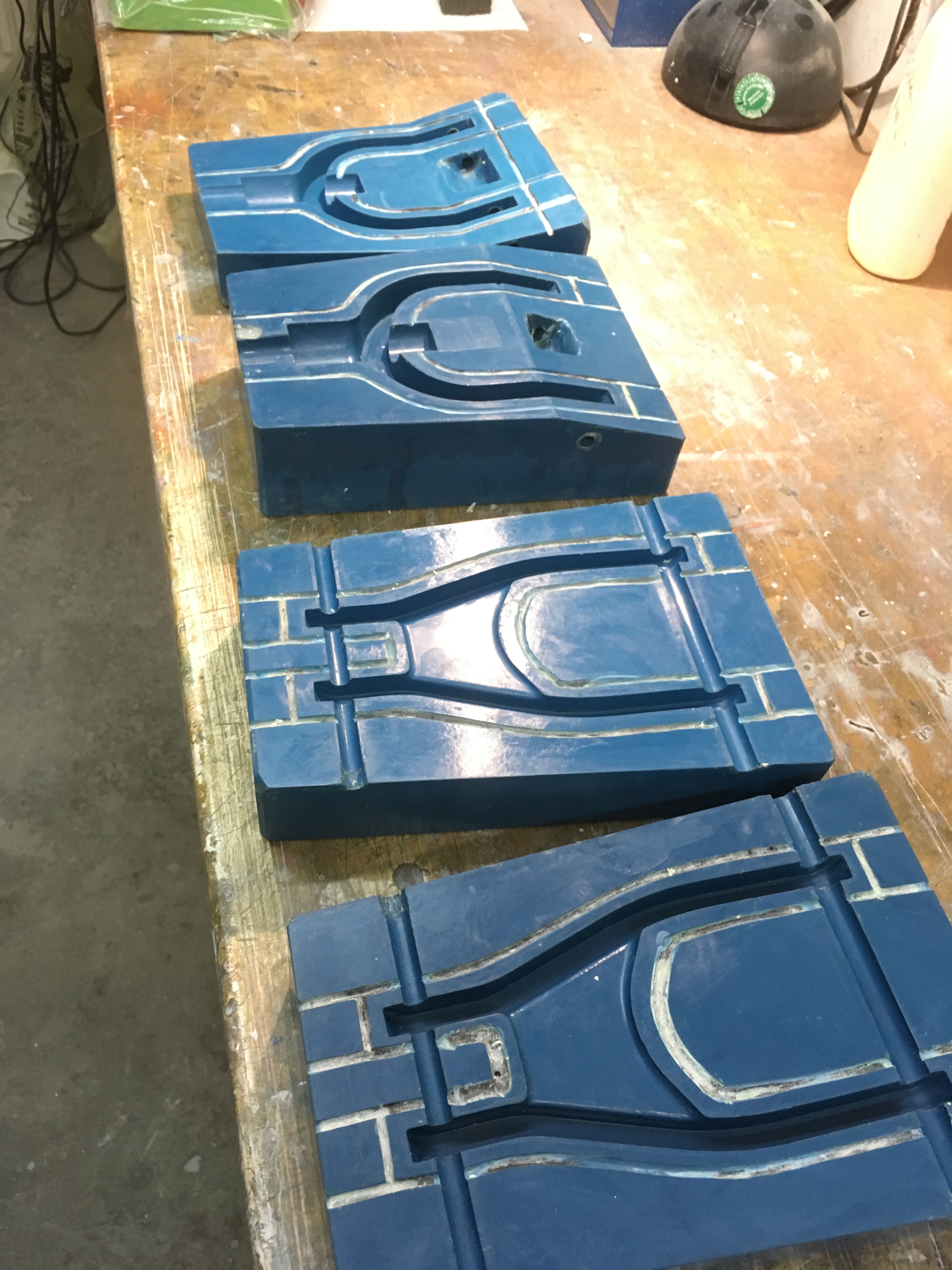 Um Lunker zu vermeiden bedarf es einer bestimmtem Füll - oder Stopftechnik, man kann das Material nicht einfach reinkippen die Füllung dauert schnell mal 20-30 Minuten. Die fertigen Bauteile kann man an die Wand schmeissen das macht denen nix aus :D :thumbup: Einige hatten vorher behauptet "eine Mumpe das haelt nicht dazu bedarf es Fasern", gut dass die Bauteile das nicht wissen, aber man kann natürlich auch Fasern mit einlegen, so wie man es gerne möchte. Mein eigener grosser Aha-Effekt war es zu sehen wie lang die gemahlten Fasern unter dem Mikroskop noch sind, ich haette zwar gedacht dass sie Faserform haben und kein Pulver sind aber ich dachte viel kuerzer, das erklärt ganz gut die enorme Festigkeit.