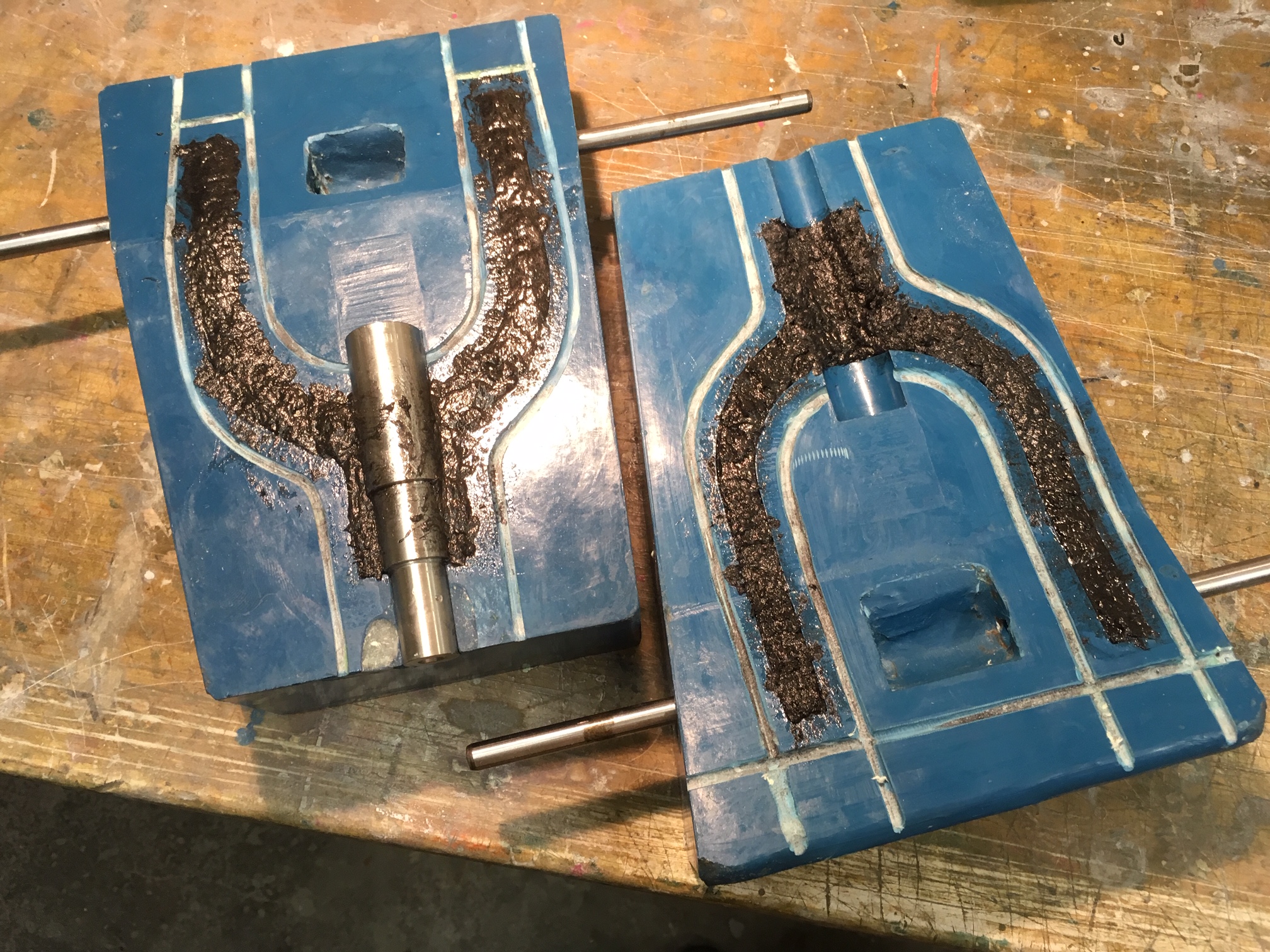 Schliffbilder der Struktur: Um Lunker zu vermeiden bedarf es einer bestimmtem Füll - oder Stopftechnik, man kann das Material nicht einfach reinkippen die Füllung dauert schnell mal 20-30 Minuten. Die fertigen Bauteile kann man an die Wand schmeissen das macht denen nix aus