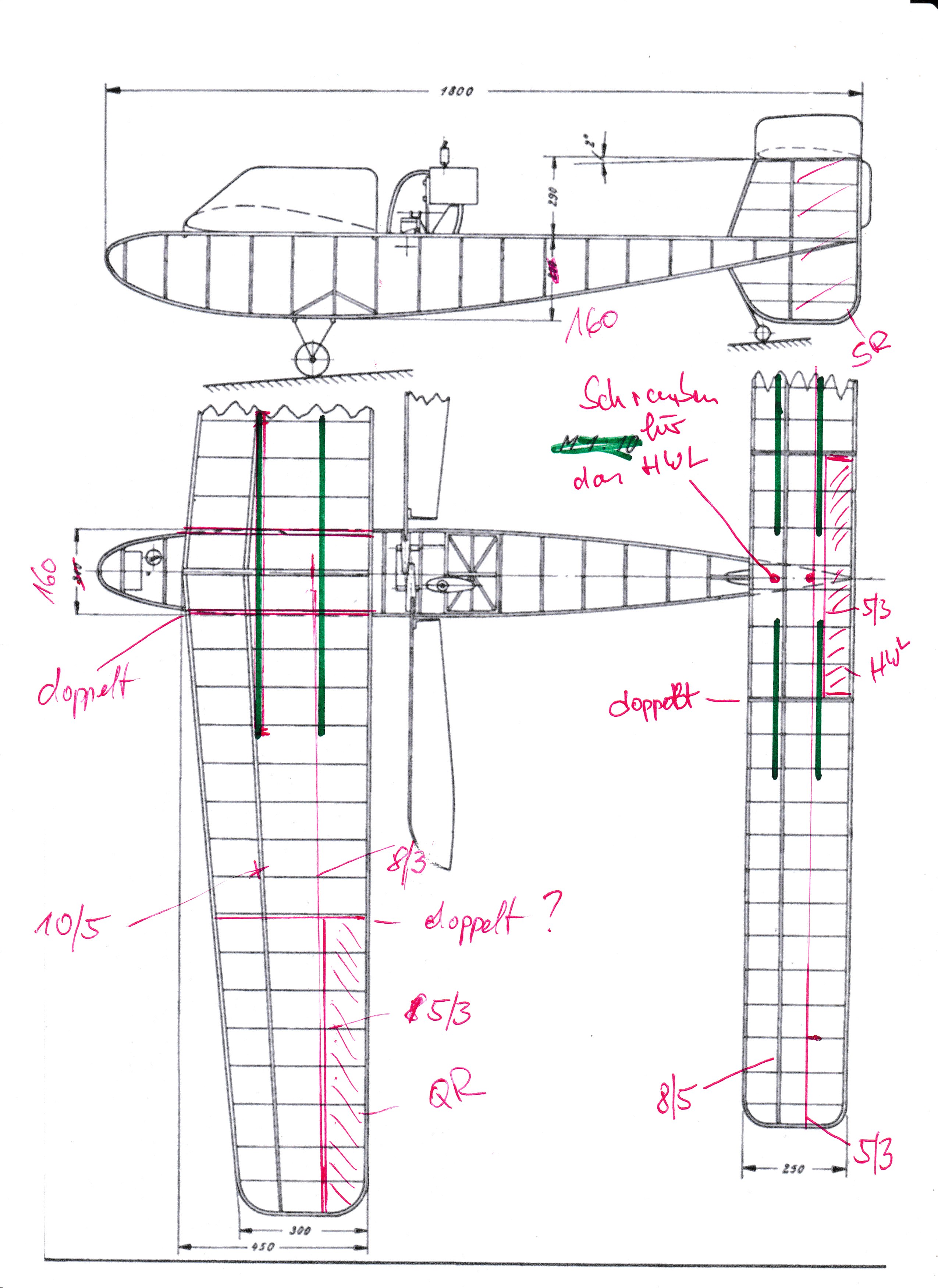Ich habe gesehen, dass das T-Höhenleitwerk mit einen Spannweite von 2,5m neben dem Antrieb auch ein Problem werden kann.