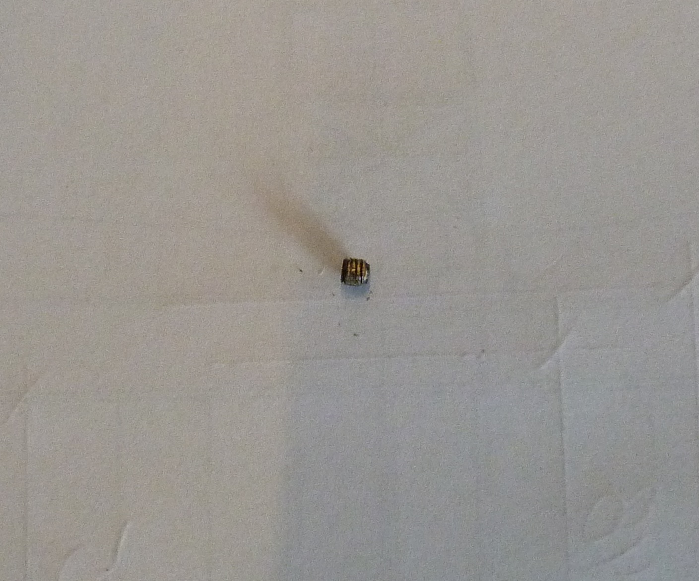 Nun das Problem war die kleine Schraube (M3) zur Sicherung des Rad auf der Welle. Sie ist einfach zerstört.