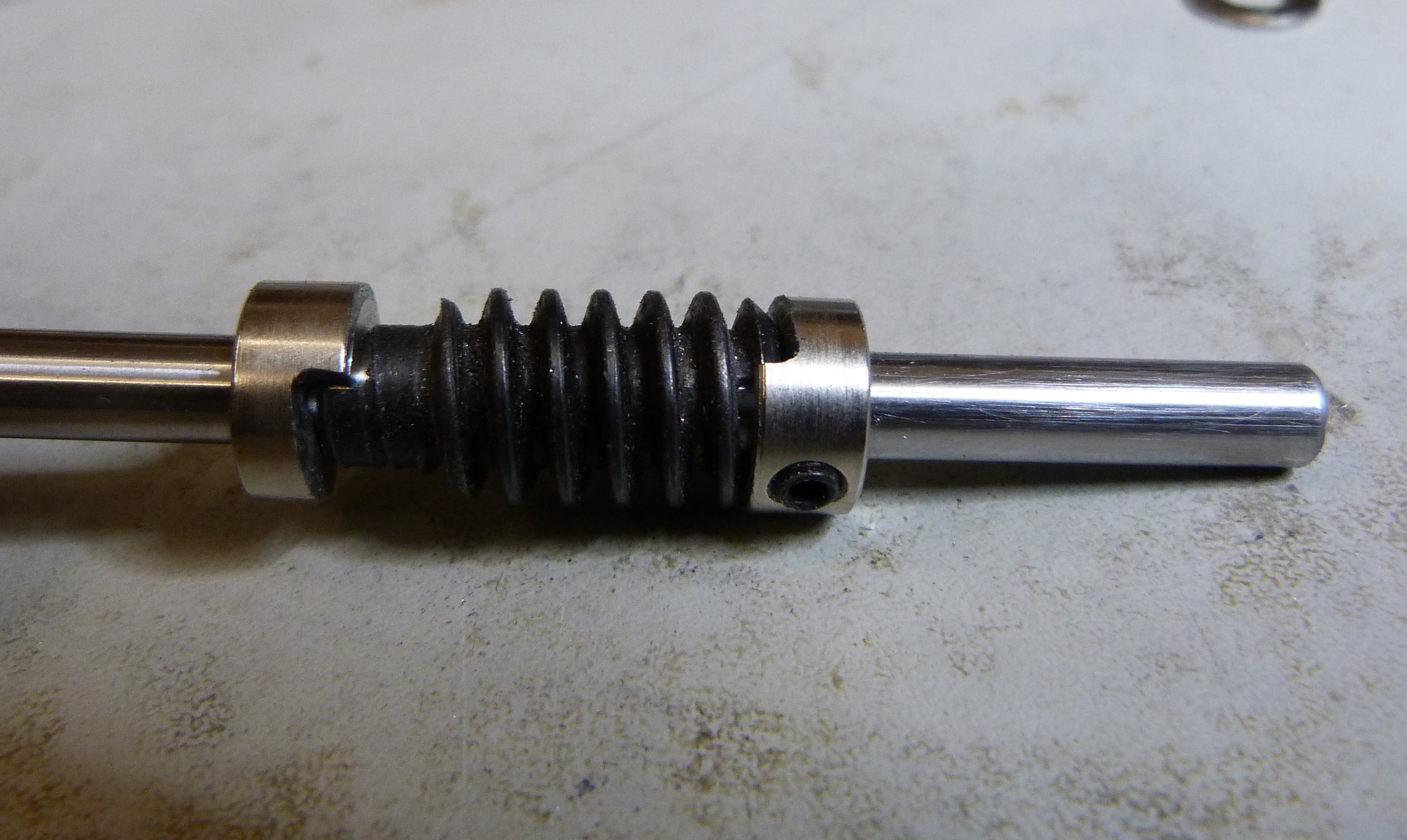 Die Schnecke wird nicht nur verklebt, sondern bekommt vorn und hinten einen Stopper mit Abflachung auf der Welle und Verzahnung zur Schnecke.