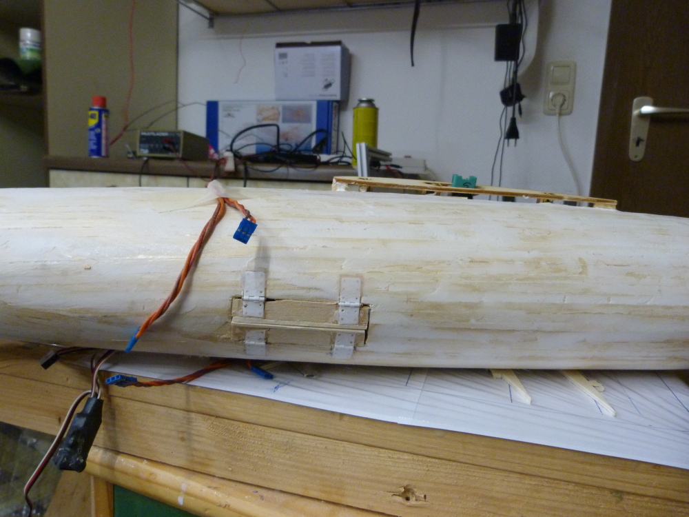 Die Scharniere sind ins Balsa eingelassen und mit Harz eingeklebt und später nicht mehr erkennbar - so ist der Plan.