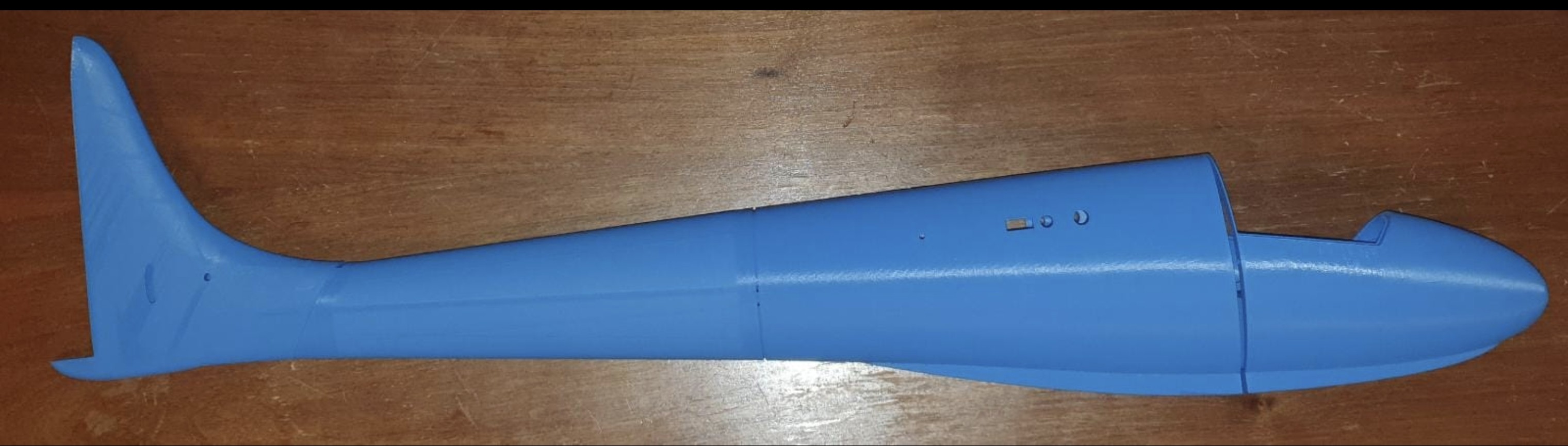 Ich habe immer mal wieder sporadisch nach einem alten Rumpf gesucht den ich abformen hätte können, aber ergeben hat sich irgendwie nie was konkretes... Vor 2 Jahren dann, so in den Anfängen meiner 3D-Druckerzeit, habe ich eine stl der Air100 gefunden, soweit vergrößert wie sie eben noch auf das Bett des grausligen Enders gepasst hat und dann eine Woche lang gedruckt...