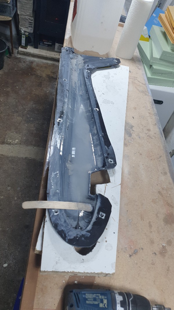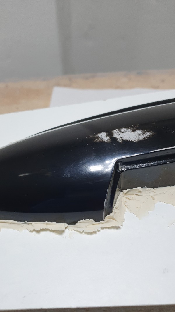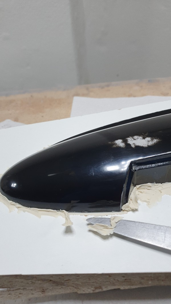 Warum Plastilin und kein Autospachtel? Der ist doch viel Stabiler als die Knete wo die Gefahr besteht das man den beim aufbringen vom Formenharz eindrückt.