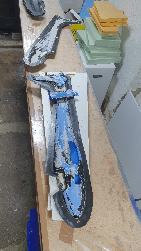 Mittlerweile sind die Einzelteile verklebt, verspachtelt, mehrfach grundiert und mit Spritzfüller geduscht. Vor mir habe ich noch ein paar Runden Nassschleiforgie und dann kommt schwarzer Lack drauf um später ein Förmchen daraus zu machen...