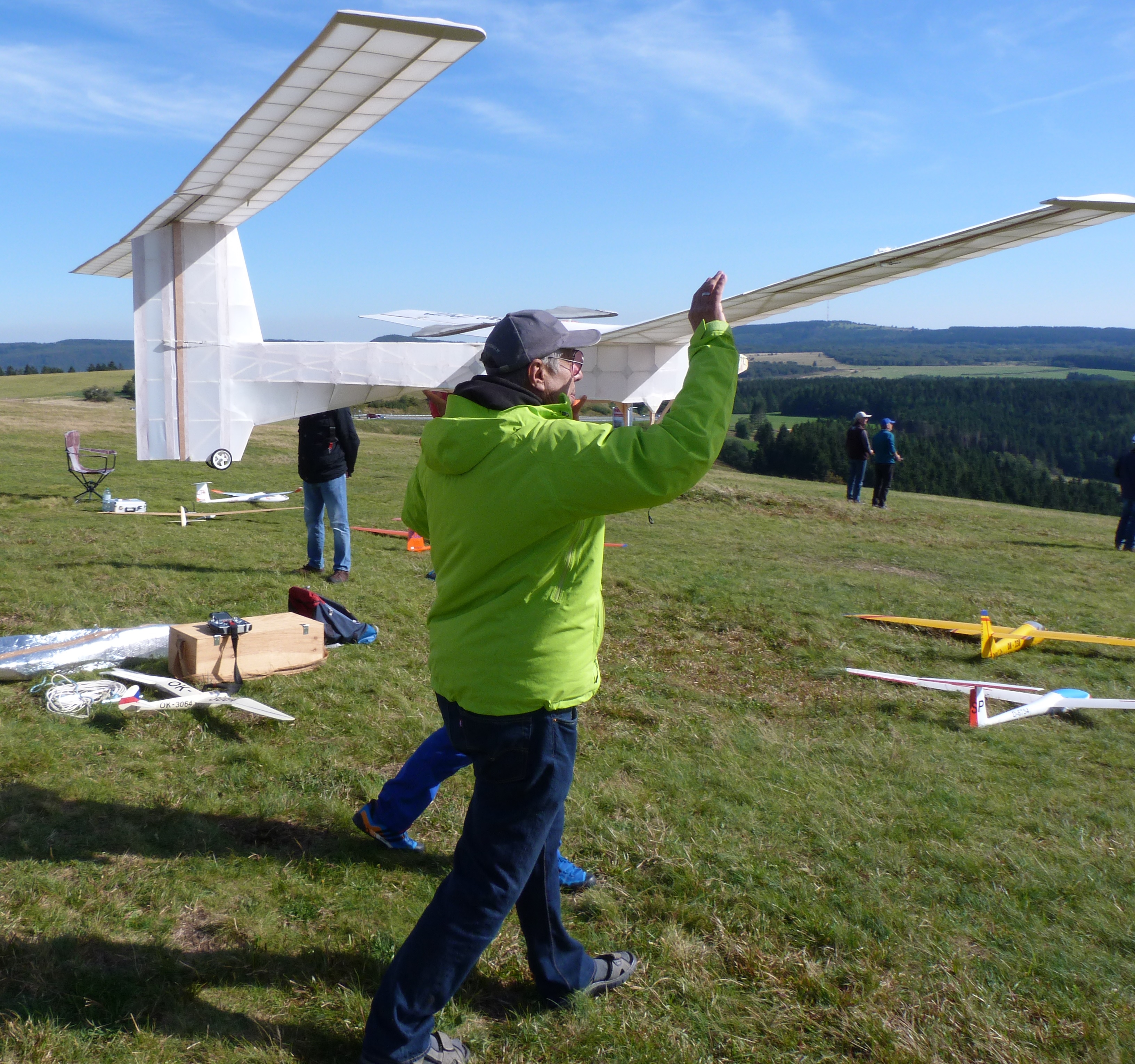 Am Donnerstag wieder ein Flugversuch – diesmal mit Motor und den „großen“ Originalschwingen.