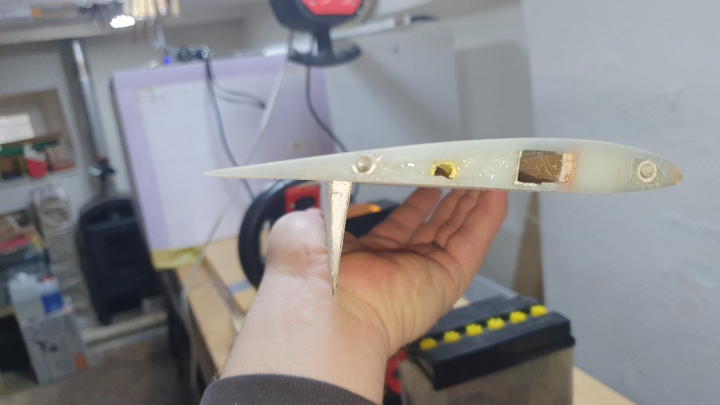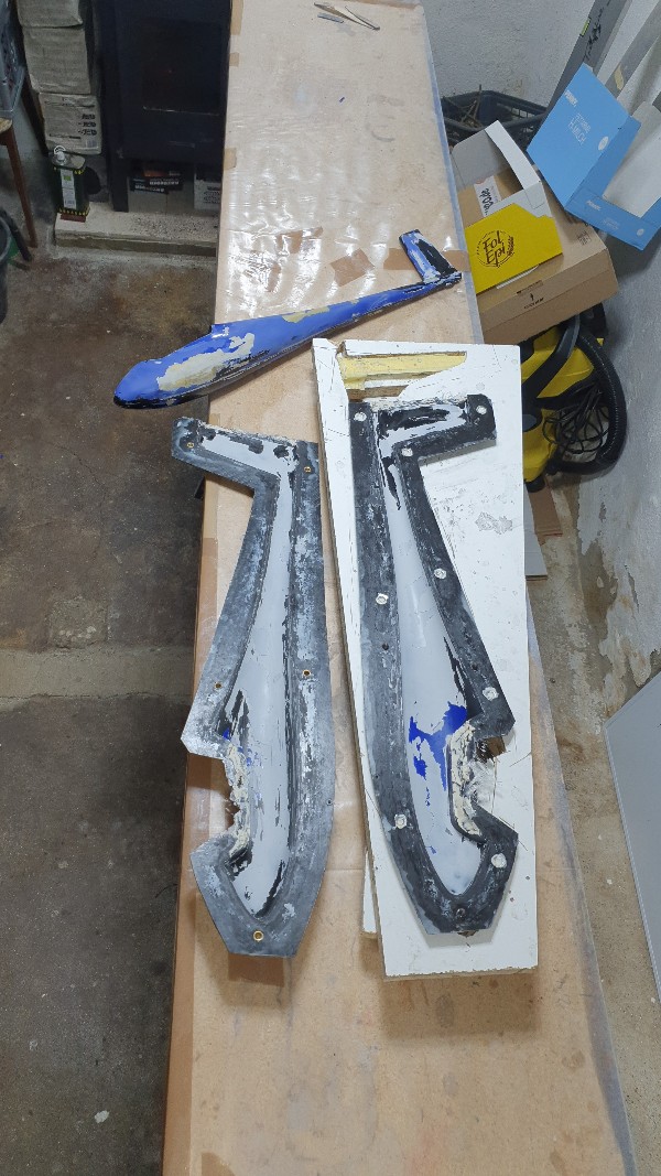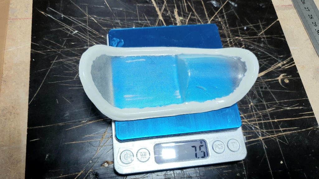 Der nächste Versuch wird mit 3 Lagen 49g Gewebe, Baumwollversetzten Microballons in der Sicke und mit PVA getrennt gemacht, damit mir dann beim Entformen die Sicke nicht zerbröselt.