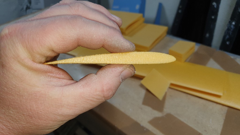 Die Kernchen sind geschnitten, der erste Rumpf laminiert und ein Verbinderförmchen habe ich auch noch schnell gebaut.