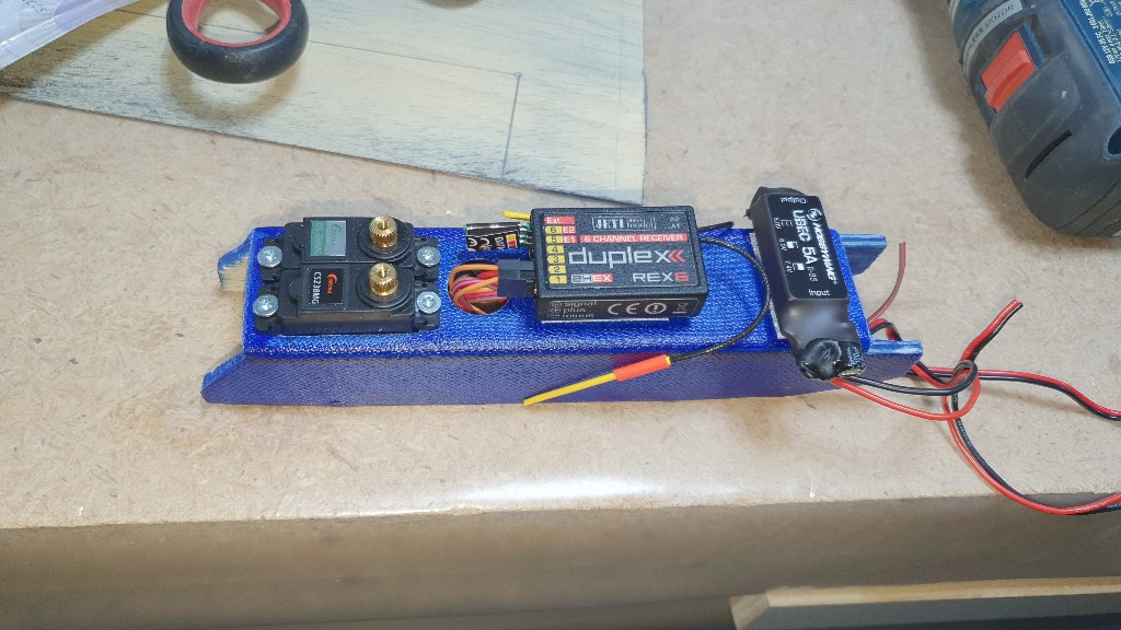 Die Flächen sind abgedrückt, das Servobrett in der Höhe nochmal angepasst, die Ausschnitte für die Servostecker der Flächen sind im Rumpf, das SR samt Spant ist einbaufertig und der Haubenrahmen ist abgeformt, das erste Rähmchen trocknet gerade.