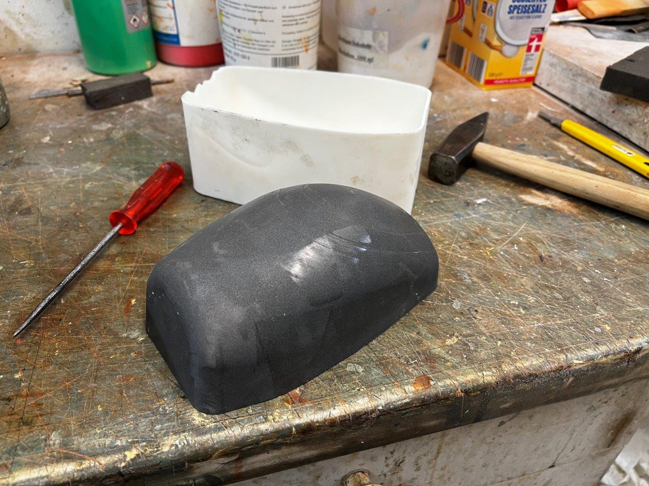 Der Haubenklotz entstand in einer Resin gedruckten Form aus Alupulver und wurde lange geschliffen.