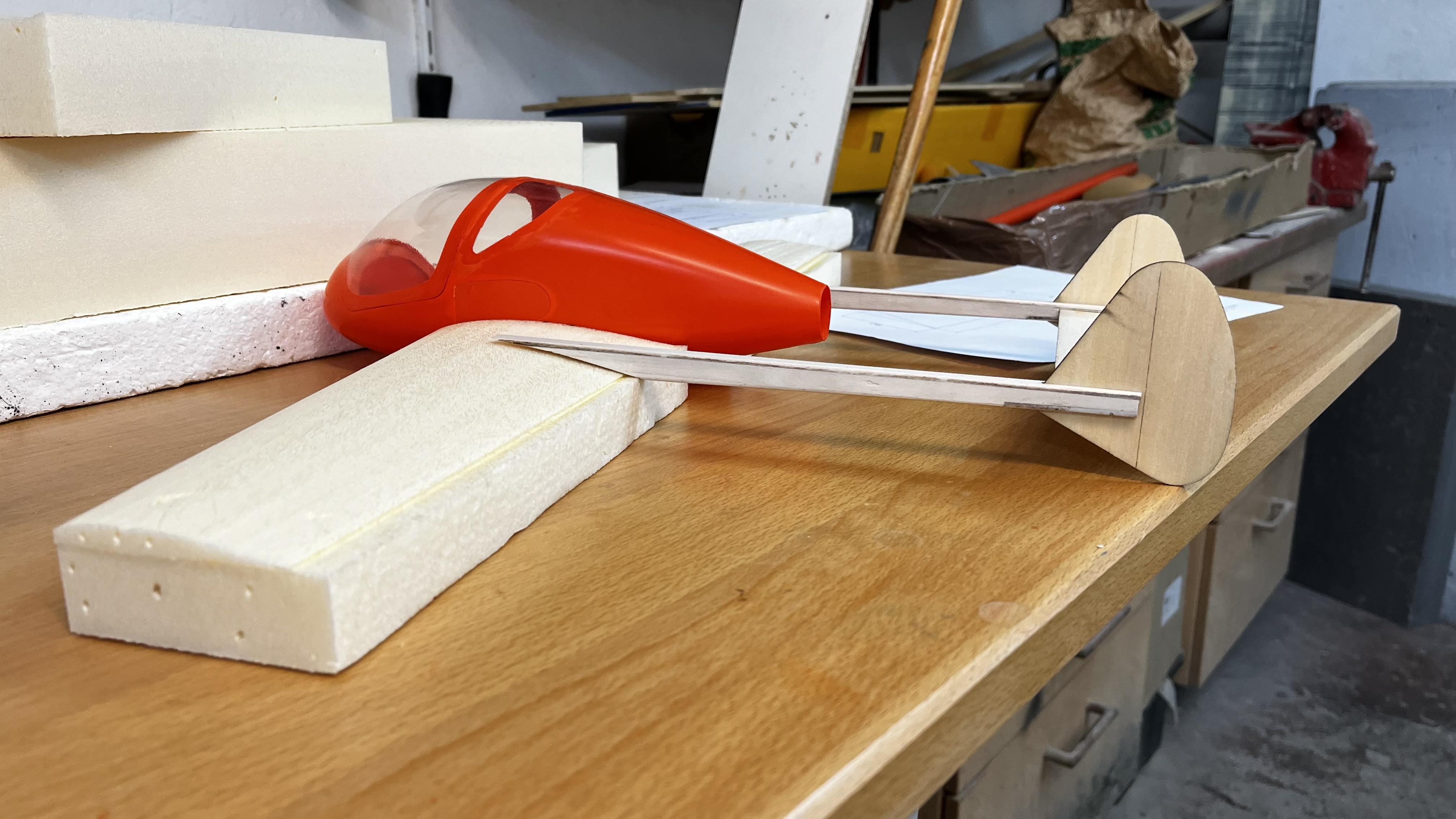Es fehlt noch der Akku und das Ausgleichsgewicht am Höhenruder aber für ein Fotoshooting mit Ed musste Zeit sein.