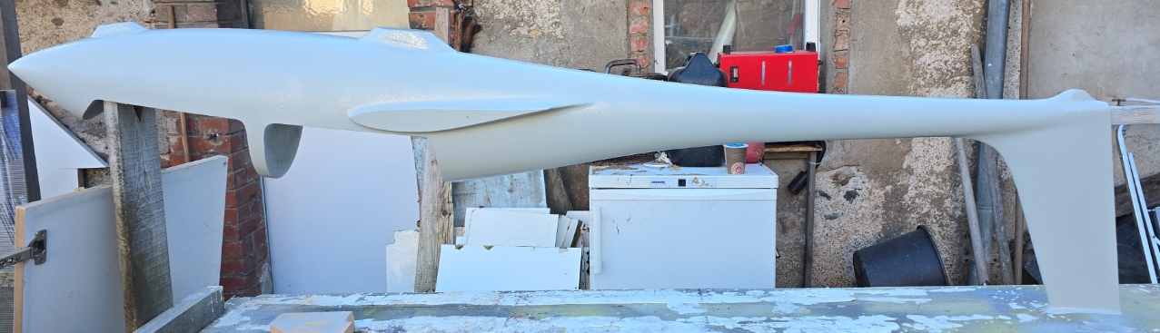 Basis war ein von Tobias organisierter Rumpf, der, so der ursprüngliche Plan, einfach nur mal schnell nebenbei abgeformt werden sollte, damit wir für den Sommer '24 eine handliche Thermikwaffe am Hang haben... Nachdem der Rumpf dann aber da war, und wir festgestellt hatten, dass da nur wenig an einen echten Twin-Astir erinnert, verflog vor grob einem Jahr die anfängliche Euphorie und uns dämmerte, dass das eine etwas aufwändigere Nummer wird. So gesehen ist das Fliegerle also irgendwie auch schon bei den Langzeitprojekten gelandet, wenn auch völlig unbeabsichtigt.