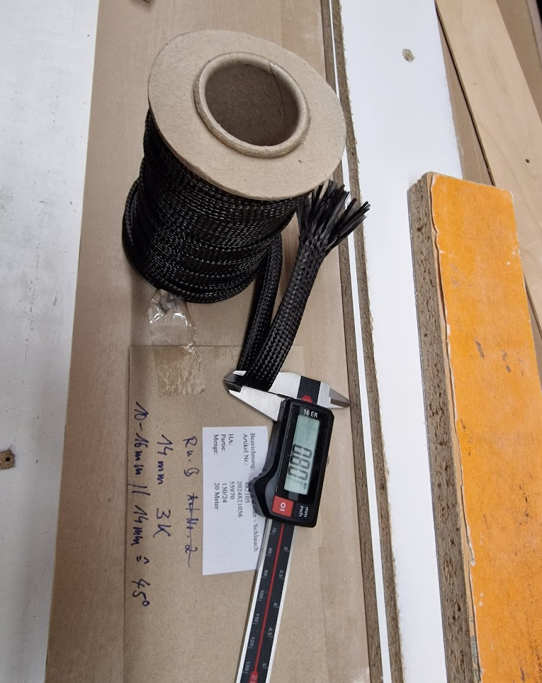 Geplant ist aktuell über jedes Balsa Inlay 1 Stück Kohleschlauch 3k mit einer Dicke von ca. 0,8 mm.