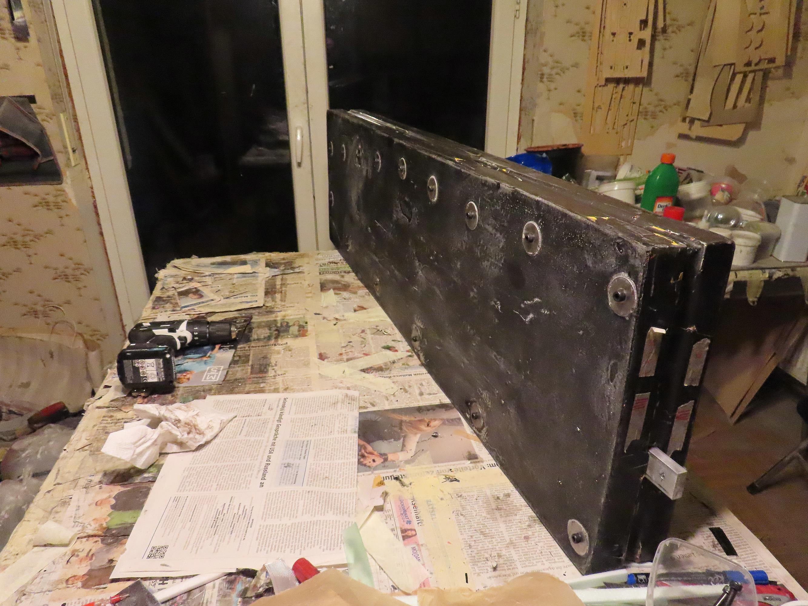 Als Außenschicht habe ich Harz mit Pigmenten eingefärbt und mit Microballons und wenig Baumwollmehl eingedickt um eine Art Grundierung zu bekommen an der ich die Druckriefen leicht rausschleifen kann.