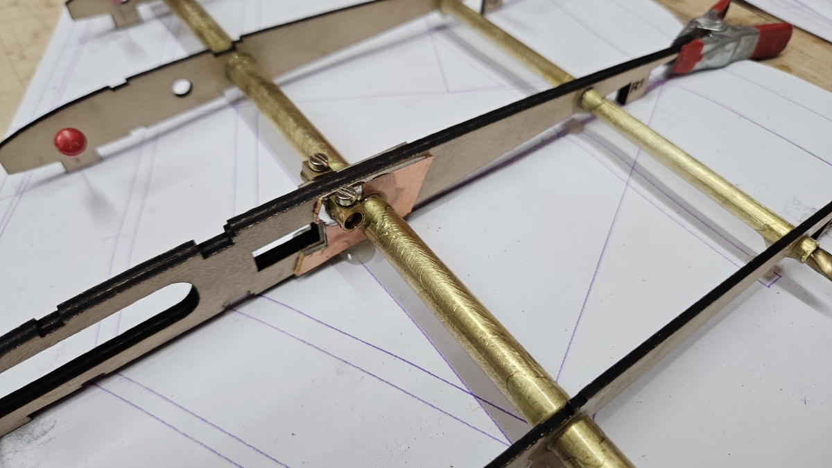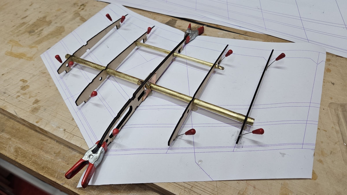 Wie man sieht, habe ich dann doch noch eine kleine Bauhelling gelasert. ;-) Damit stehen die Rippen im richtige Abstand und Winkel und auch senkrecht.
