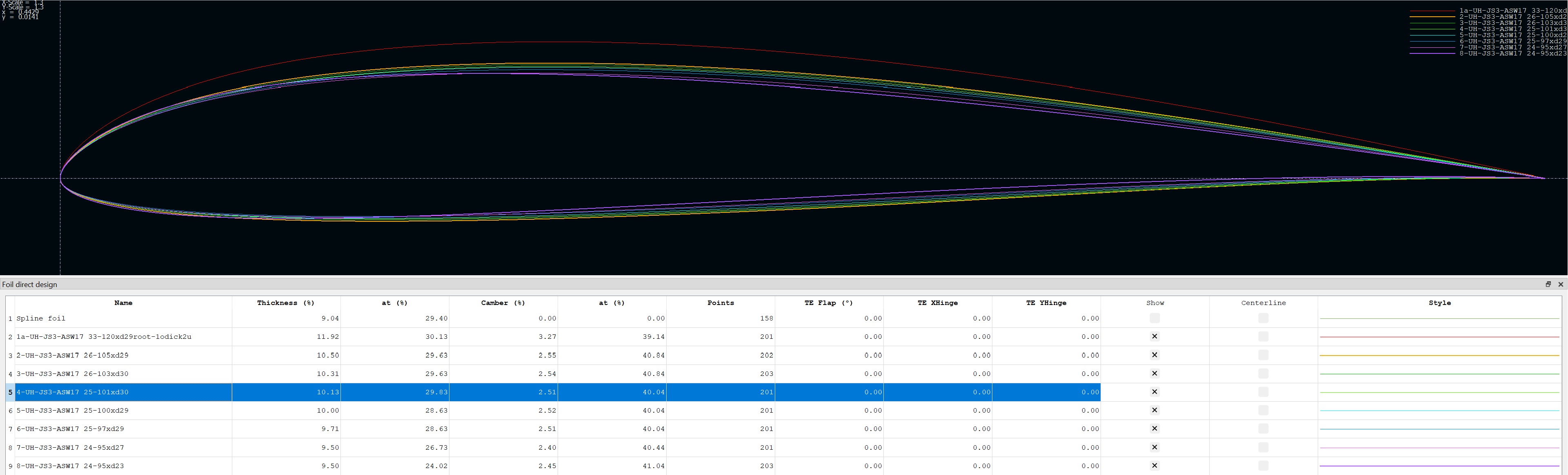 Ich möchte jetzt noch was am Wurzelprofil probieren das aus der AS35-Auslegung kommt und dann sind noch 3 Strakprofile für die gewünschte Aufteilung der Styrokerne zu machen...ist nicht mehr viel zu tun, sollte dieses Wochenende noch klappen.