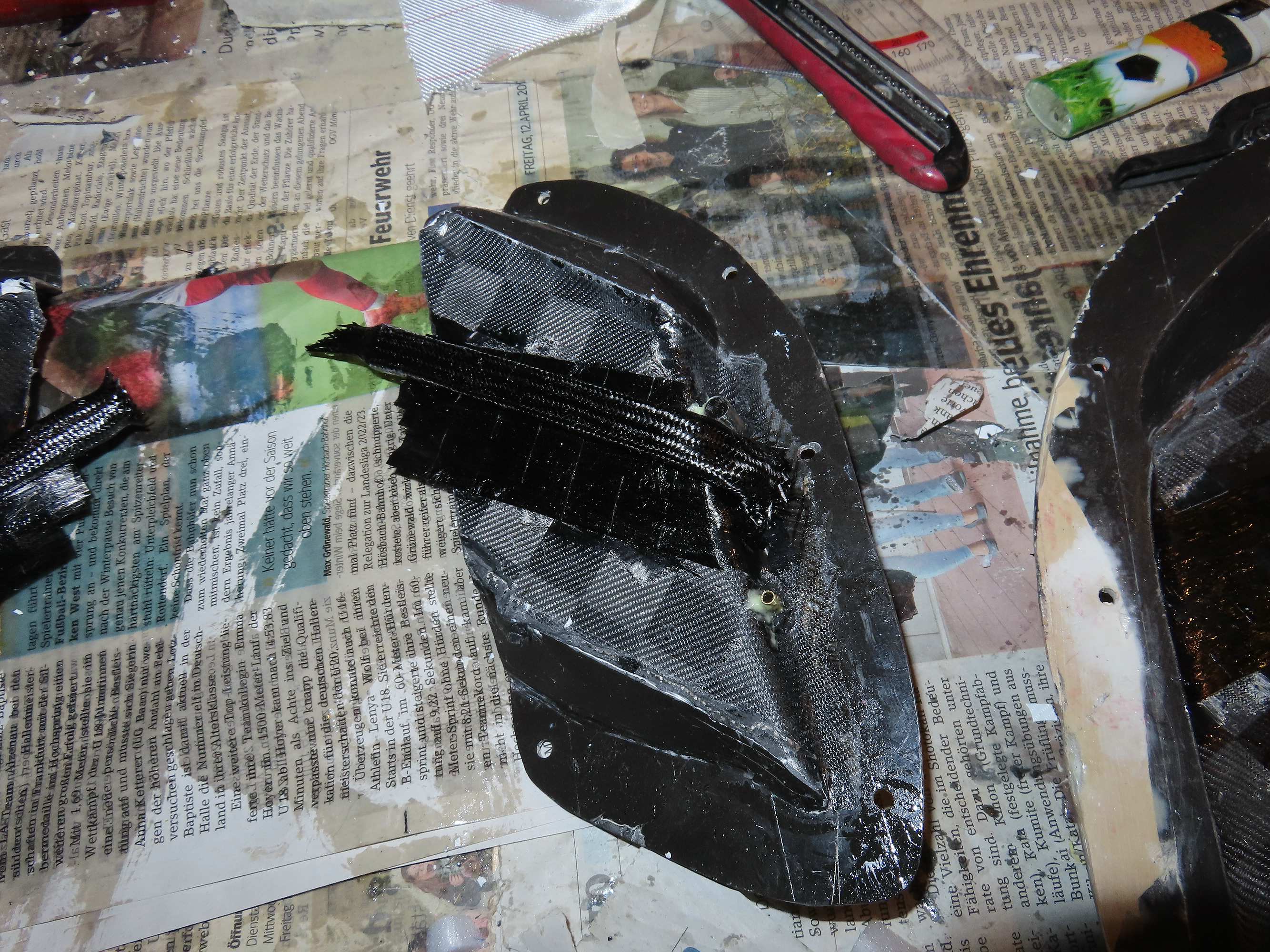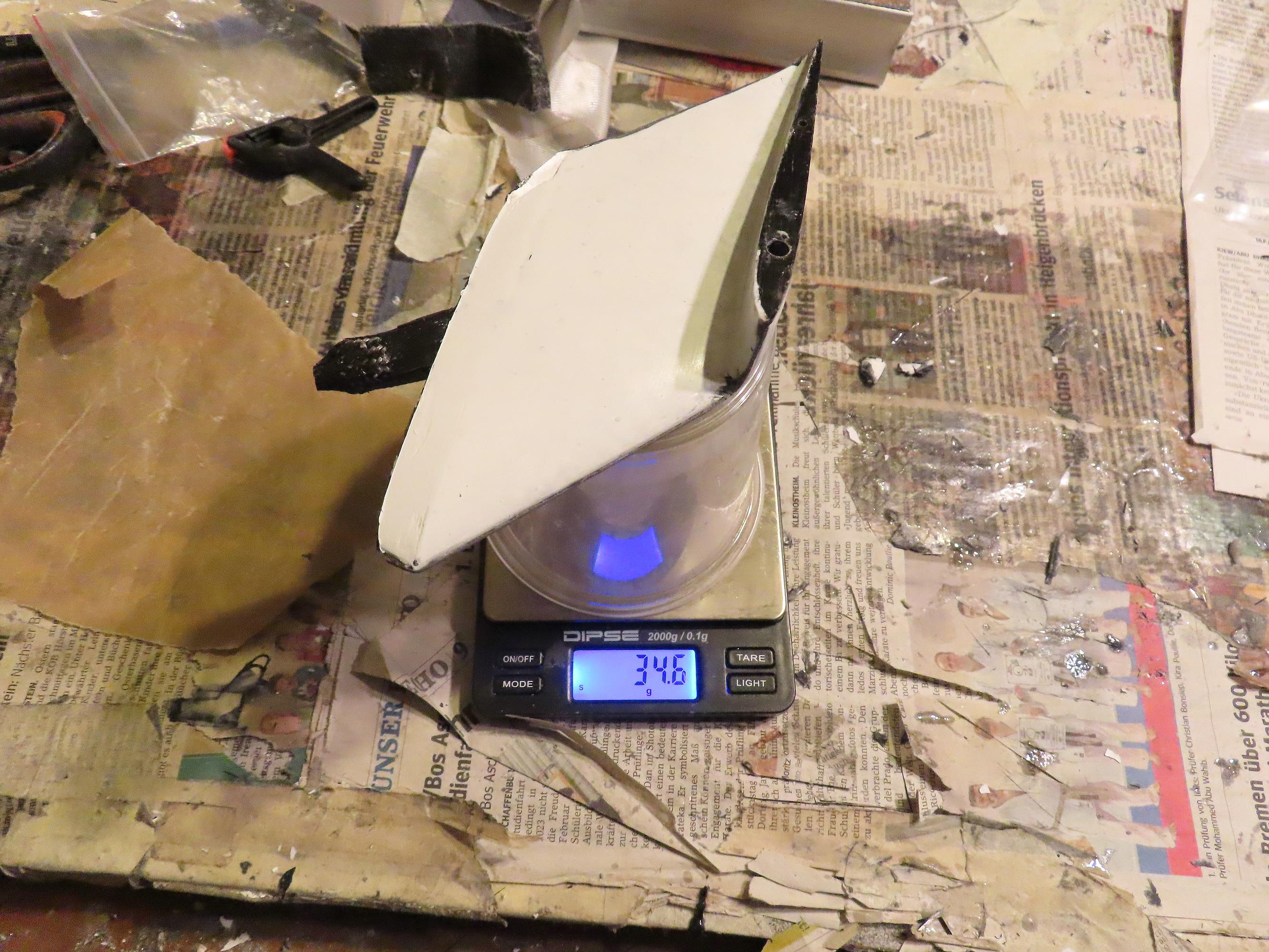 Die Formen sind wegen Protypen-Provisorium erstmal recht einfach gehalten, auch die Oberfläche ist nicht perfekt gespachtelt und feingeschliffen, dafür ist die Geometrie nicht ganz einfach. Ich habe lange rumüberlegt wie ich das stabil und trotzdem nicht zu schwer umsetzen kann.