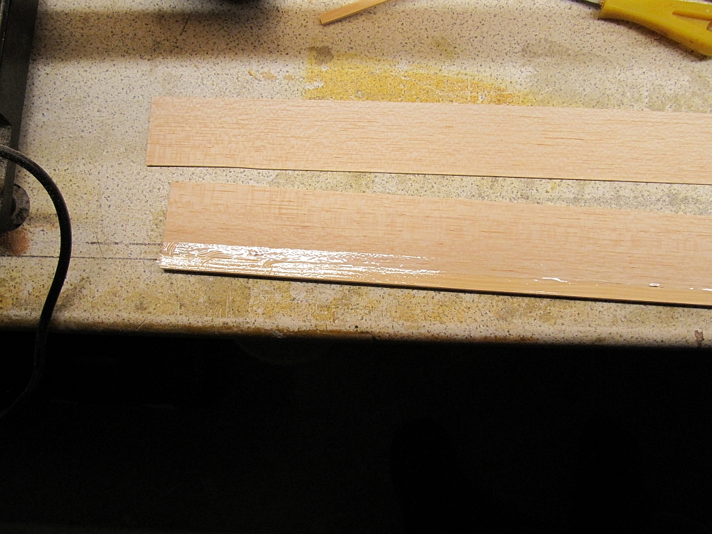 Der Rumpf wird aus 1mm, 2mm und 3mm Balsa mit zwei Sperrholzspanten zur Flächenaufnahme und in den Ecken 4x4 mm Kiefernleistchen gebaut werden, die Leitwerke wohl doch ein Gerüst aus 4mm Balsa, nicht wie geplant als Balsasandwich mit Aussparungen. Die Flächen werden aus 1,5mm Balsarippen, mitig davon 2 gedoppelten und 3 Sperrholzrippen gebaut. Holme werden 2st 5x10 Kiefernleisten im Mittelteil und an den Ohren 2st 3x7 mit stehenden Balsaplättchen dazwischen. Nasenleiste im Mittelteil 6x6 und an den Ohren 4x4 Kiefer. Beplankung und Endleiste beidseitig 1mm Balsa. Die Fläche wird einteilig, vorne mit Dübel und hinten geschraubt am Rumpf fixiert. Die Verbinderwinkel werden aus Sperrholz gesägt.