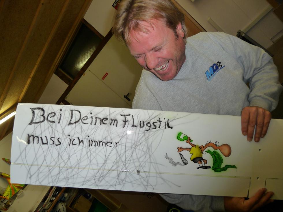 Mini Ellipse, die hat ein Freund von mir geflitscht und vergessen vorher einzuschalten. Landete danach mit mehrfachem Flügel- und Rumpfbruch in der Tonne. Habe mich dem Fliegerchen angenommen und ihm danach zurückgegeben. Fliegt wieder ordentlich