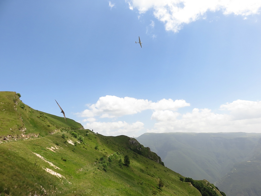 In der schwachen Thermikzeit dachte ich mein AvatarF3B fliegt mit einem Adler in der selben Thermik, aber beim anschauen und vergrößern der Bilder war es doch nur so ein Geflügel mit blondierter Kurzfederfrisur auf dem Kopf und kleinerer Flügelstreckung....müsste ein Truthahn gewesen sein