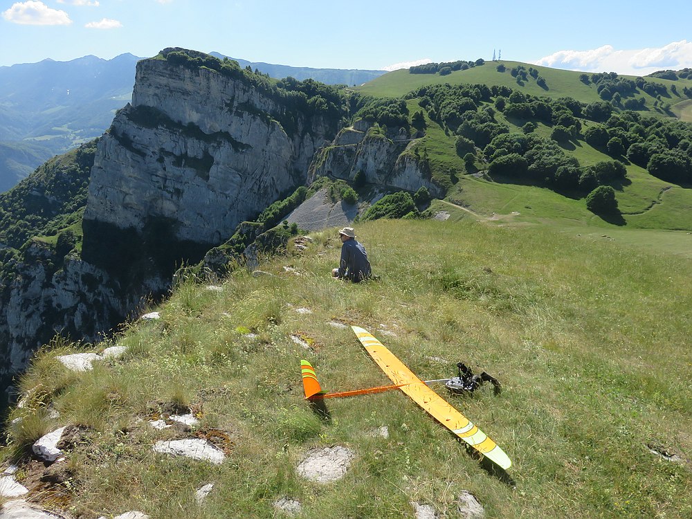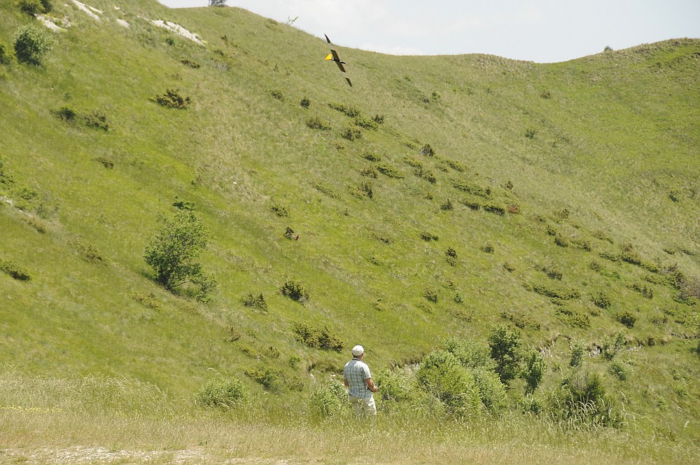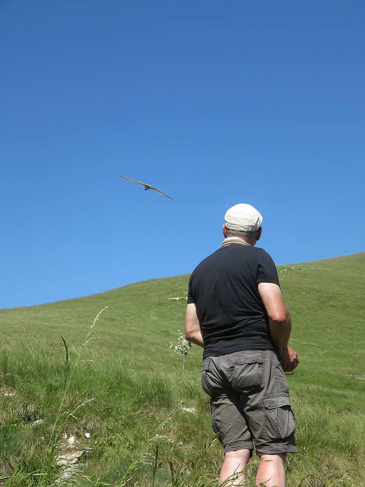Der Lilloo durfte ein paar Flitschenstarts machen, aber an dem weitläufigen Hang ist er wegen der Sichtbarkeit nicht das optimale Fluggerät für schwaches Wetter.