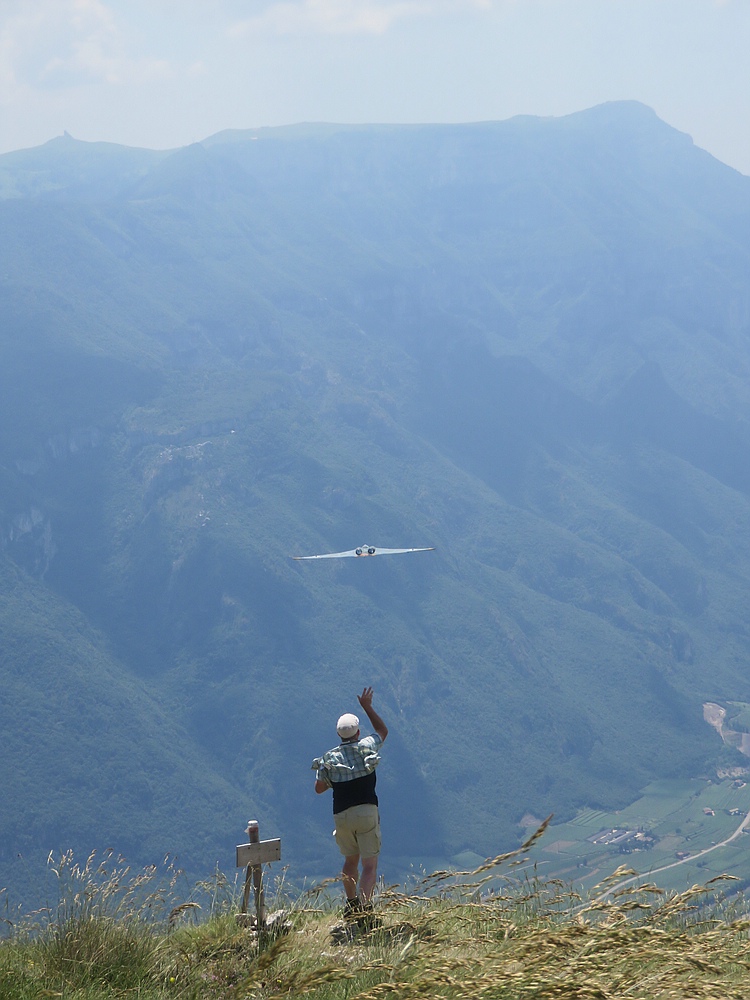 Für mich ging mit dem Fliegen der 10 Jahre alten Horten XIV bei perfekten Bedingungen in alpiner Landschaft ein jahrelang gehegter Traum in Erfüllung, es waren sogar 4 laaangsame, eierige Rollen mit dem trägen Geigenkasten drin