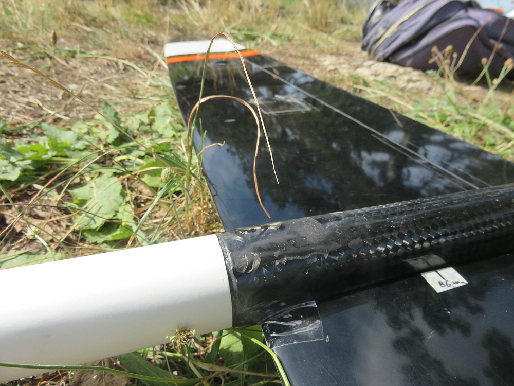 Der Rumpf war schon drei mal an der gleichen Stelle vor der Nasenleiste durch gebrochen. Die Reparaturen von außen haben die Landungen nicht ausgehalten und von innen kommt man wegen dem reparaturunfreundlichen RC-Schwert eigentlich nicht dran. Ich hab das Schwert letztlich mit einer Oszillationssäge rausoperiert, von innen mit Basaltgewebe verstärkt und von außen wieder Kohlegewebe eingeschäftet. Dabei habe ich auch die Anlenkungen ausgetauscht die für brummen der Leitwerksklappen gesorgt haben. Ich hab zwar wieder Glaszüge rein gemacht, aber die Außenhüllen sind so lang wie möglich geblieben und statt den 2 mm mit dünner Glasseele und Teflonummantelung sind jetzt 2 mm GFK-Vollstäbe drin....mal sehen obs dieses mal mehr als 300 km/h aushält.