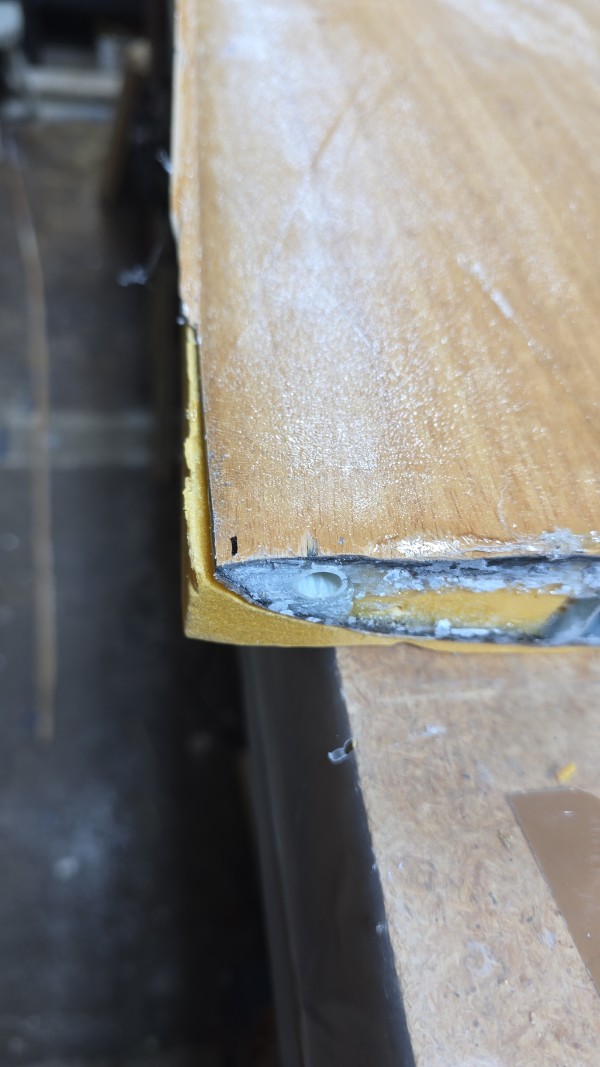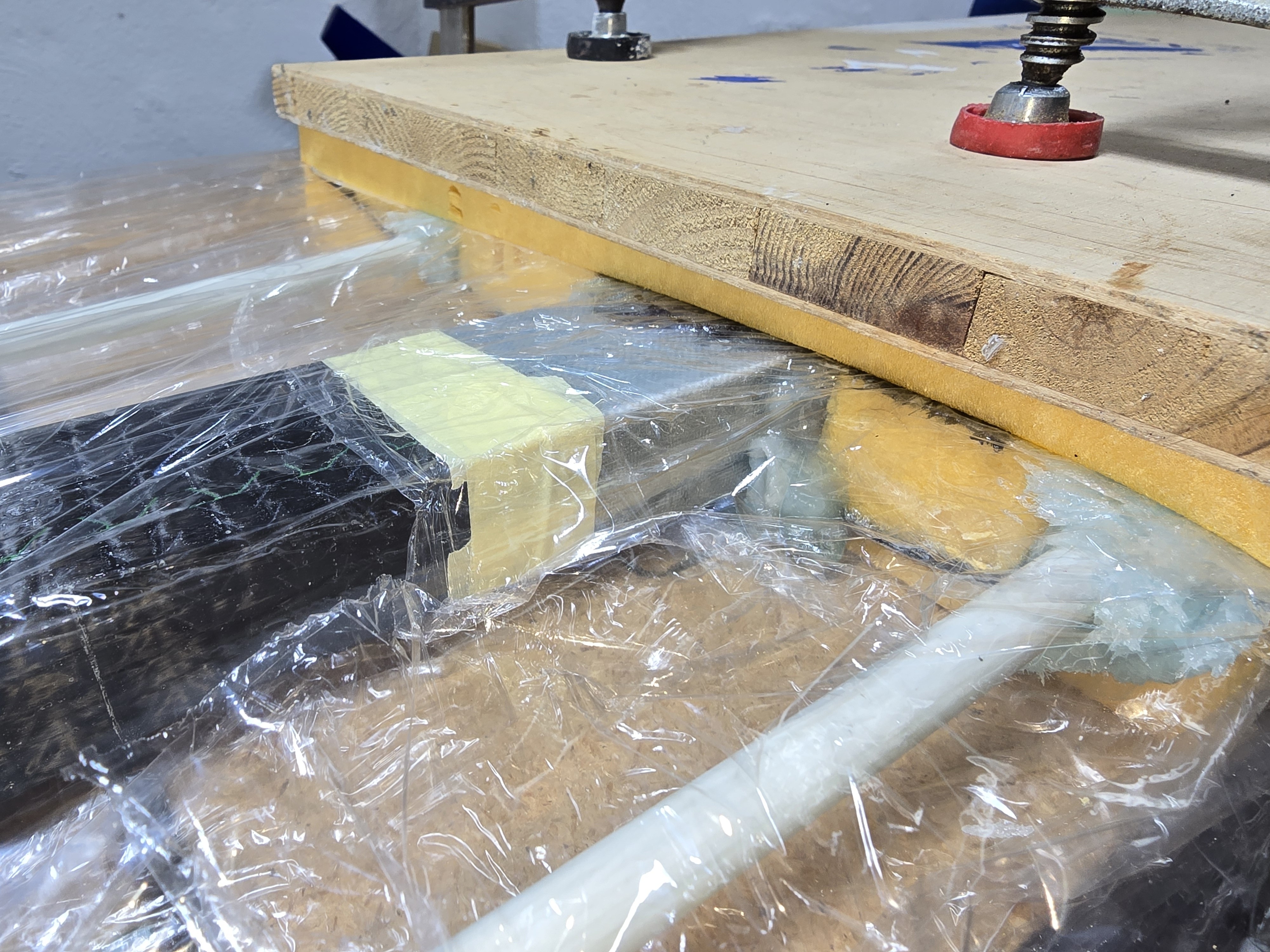 Ich will ja kein unnötiges Gewicht mit mir rumfliegen, was nichts zur Stabilität beiträgt, sondern eher zu einer "Glashärte", also zu einer erhöhten Bruchempfindlichkeit führt am Ende. Also wird das Furnier natürlich niemals gesperrt sondern darf und soll das Harz, das ja nicht in das XPS eindringen kann, im Gegensatz zu Styropor, was "zuviel" ist aufnehmen.