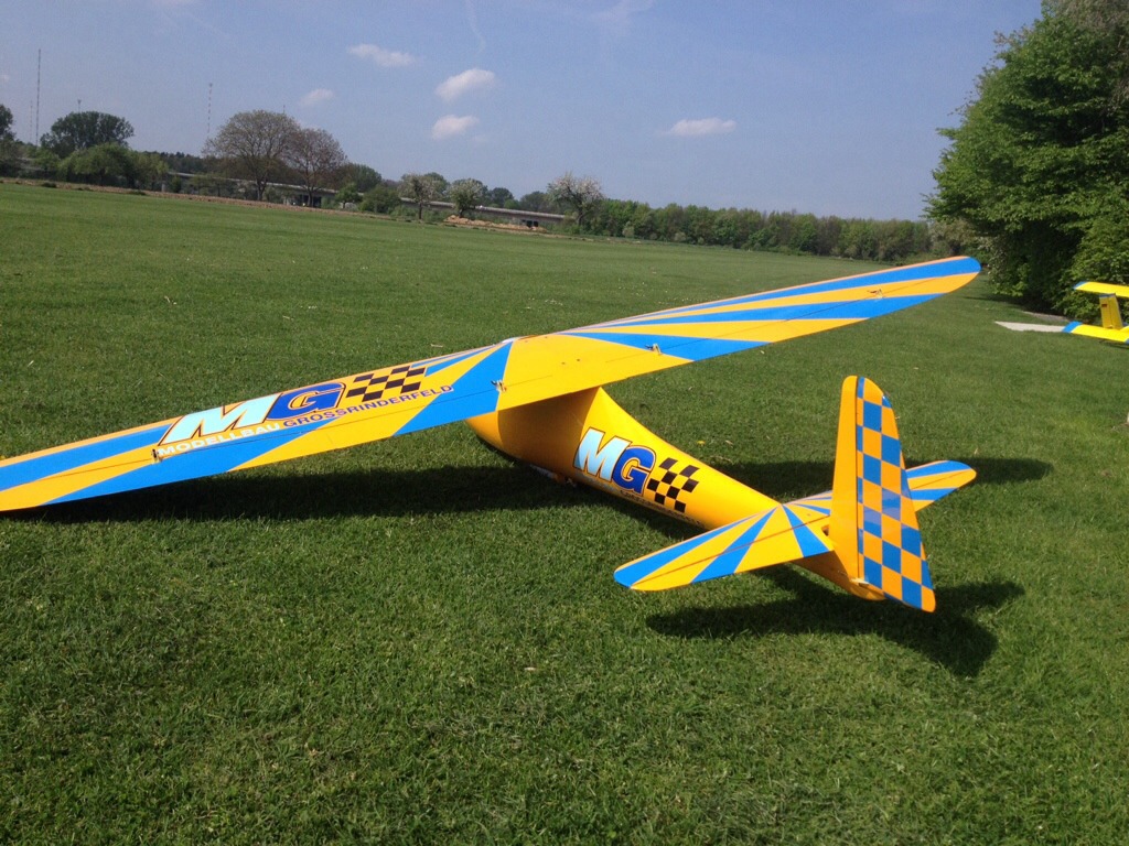 nachdem am Wochenende mein Silk beim Hochstart der Ansicht war, dass Tragflächen überbewertet werden, war es an der Zeit für schnellen Ersatz. Zum Glück hatte ein Modellflugkollege Mitleid und noch einen betagten Flieger übrig.