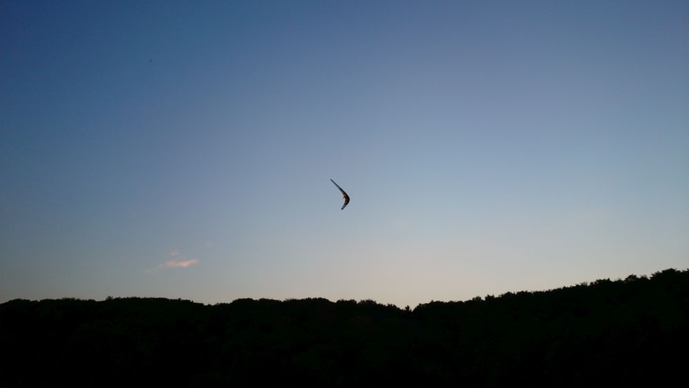 Sieht schlimm aus fliegt aber sau gut. Will nicht runter das Teil. Irre wie langsam man den machen kann. Ich bin begleisert. In ruhiger Abendluft war das Sinken irgendwo zwischen 0,2 und 0,3m/s :D :thumbup: