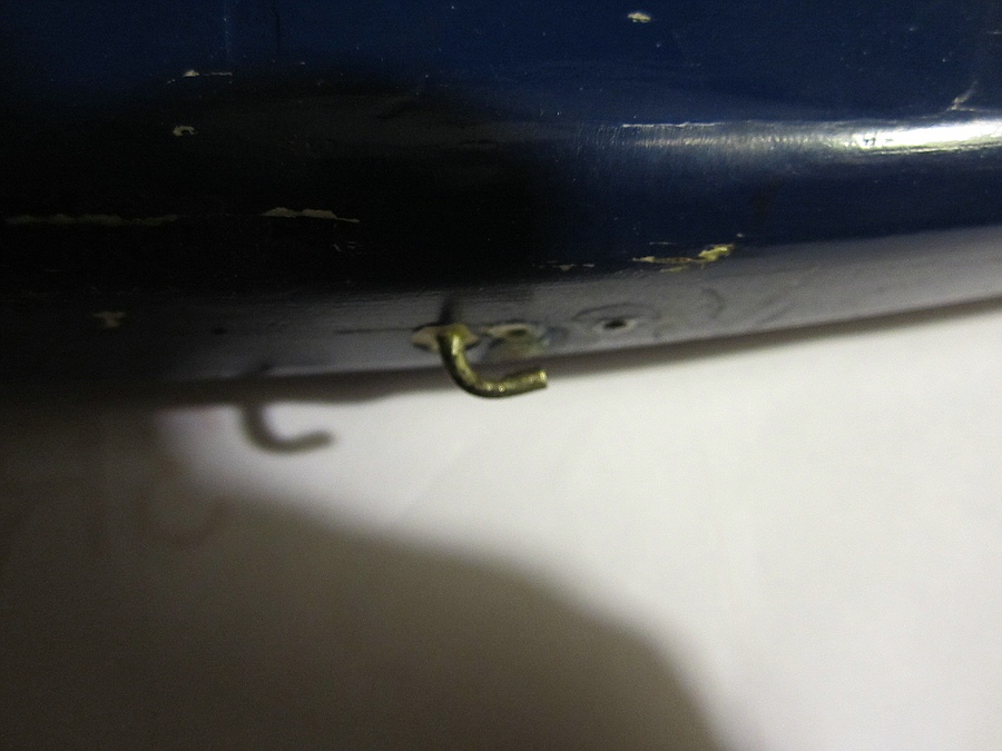 Der Hochstarthaken sitzt bei mir 245 mm hinter der Nase, also ca. 15-17 mm vor dem Schwerpunkt. Ich habe eine 3 x 10 x 40 mm Sperrholzleiste auf den Rumpfboden geklebt und einen einfachen 2,5 mm Drahtwinkel in die Holzleiste geharzt. Der Drahhthaken ist etwas zu gebogen und hat mit einem kleinen Fräser am "Knie" eine kleine Kuhle bekommen weil der Ring immer zu früh aus dem Haken gefallen ist. Das Optimum hab ich aber noch nicht gefunden, zuletzt war der Haken zu weit zu gebogen und der Ring fiel erst lang nach dem entspannen des Gummis raus.....ich starte halt meist aus der Hand, auch auf flachen Wiesen, das optimieren des Hochstarts hatte noch keine Priorität.