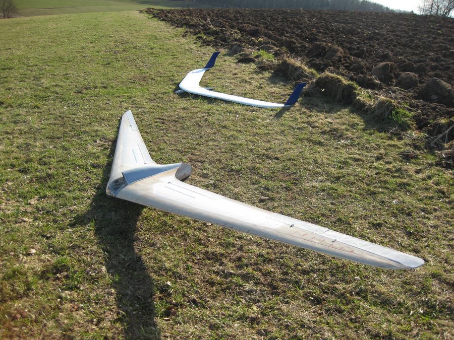 Bei den ersten beiden Flügen bin ich noch ohne die gesplitteten Ruder mit konventioneller Mischung geflogen, aber ich hab dafür die Wölbklappen und die Sörklappen getestet.