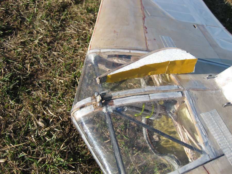 Die Störklappen wirken deutlich kopflastig, aber das kannte ich ja schon von meinem Jungfernflug mit Andrés Maschine und das hochtrimmen von ca. 2 mm über einen Mischer hat auch gleich gut gepaßt, die Landungen waren dann auch alle O.K., im Gegensatz zu der in Heidelberg.