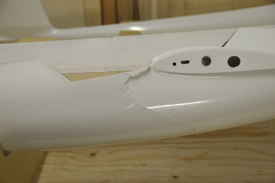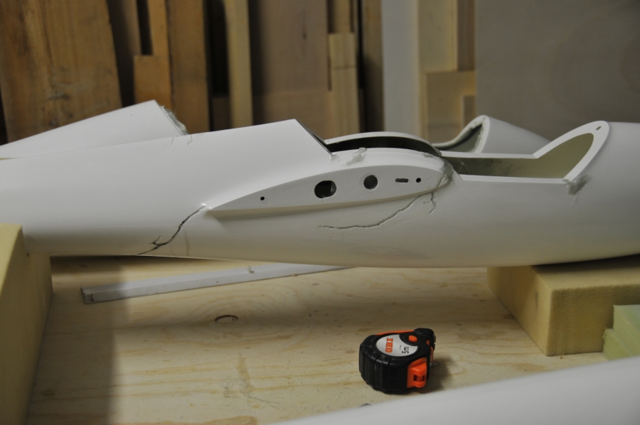 Der Rumpf ist an mehreren Stellen gebrochen und eine Fläche hat zwei kleine Bruchstellen. Es ist alles bis auf Kleinigkeiten repariert, wenn Uwe kommt, kann sie wieder fliegen. Aber nach so einem Erlebnis geht es einem eirklich nich gut, zumal sie so schön geworden ist. Ich gebe mein Bestes, dass es wieder so wird wie vorher.