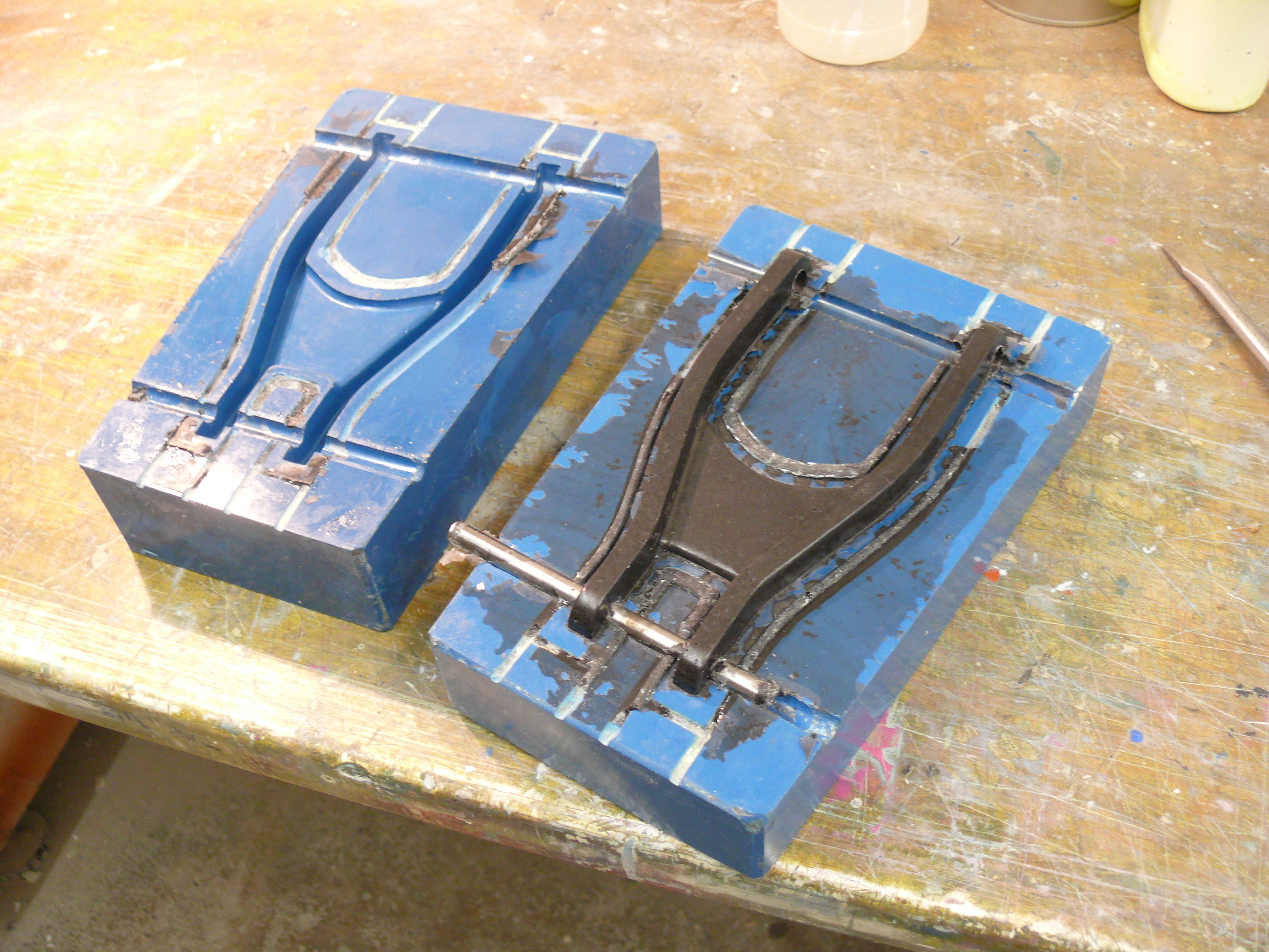 Um Lunker zu vermeiden bedarf es einer bestimmtem Füll - oder Stopftechnik, man kann das Material nicht einfach reinkippen die Füllung dauert schnell mal 20-30 Minuten. Die fertigen Bauteile kann man an die Wand schmeissen das macht denen nix aus :D :thumbup: Einige hatten vorher behauptet "eine Mumpe das haelt nicht dazu bedarf es Fasern", gut dass die Bauteile das nicht wissen, aber man kann natürlich auch Fasern mit einlegen, so wie man es gerne möchte. Mein eigener grosser Aha-Effekt war es zu sehen wie lang die gemahlten Fasern unter dem Mikroskop noch sind, ich haette zwar gedacht dass sie Faserform haben und kein Pulver sind aber ich dachte viel kuerzer, das erklärt ganz gut die enorme Festigkeit.